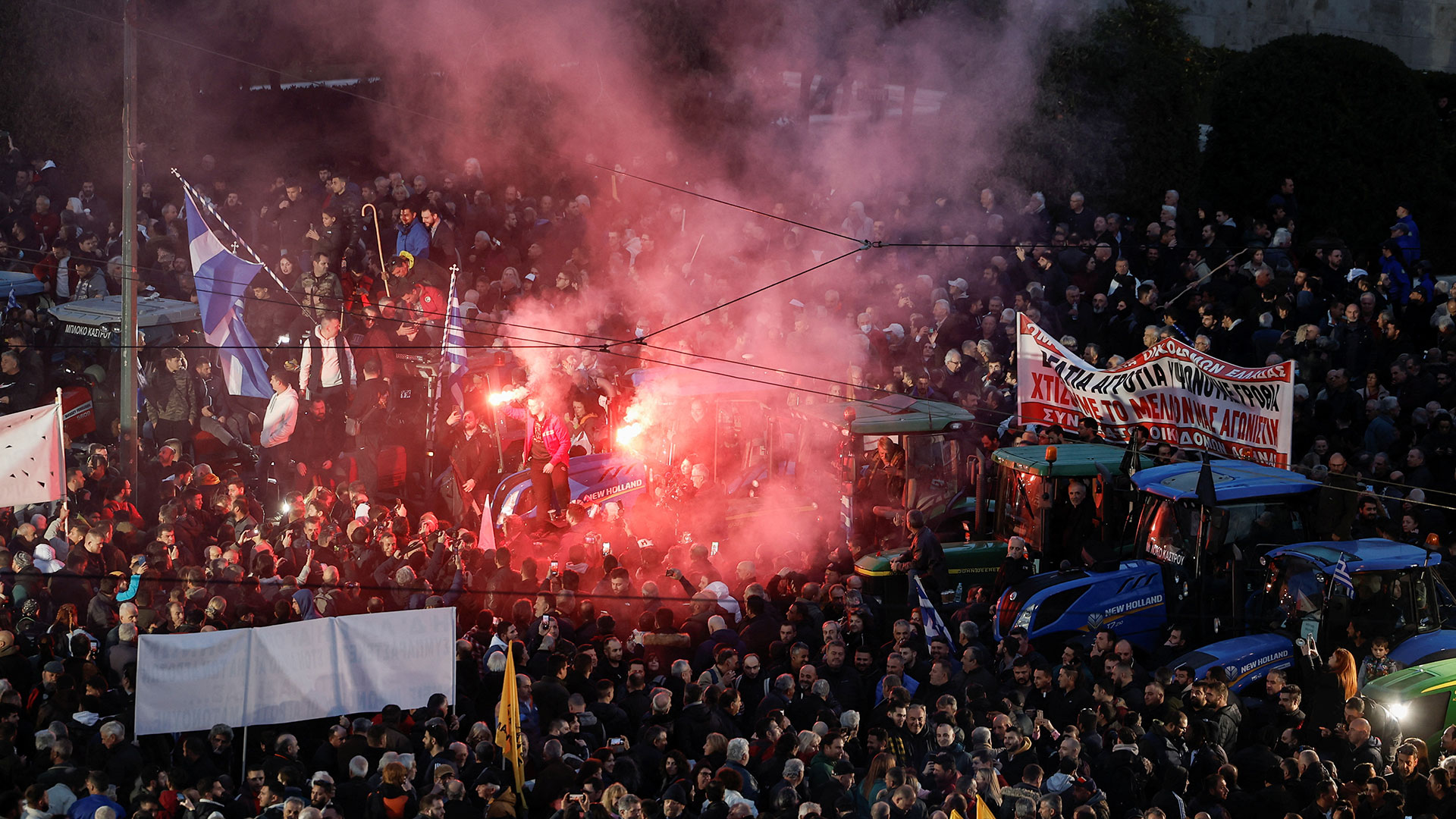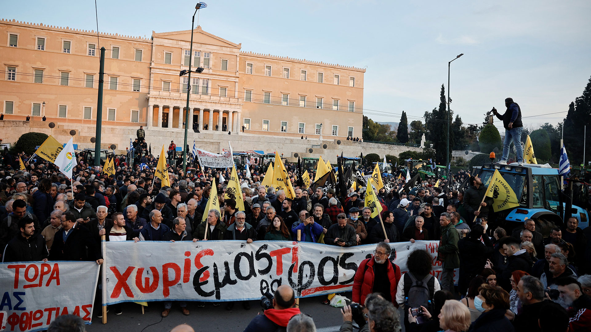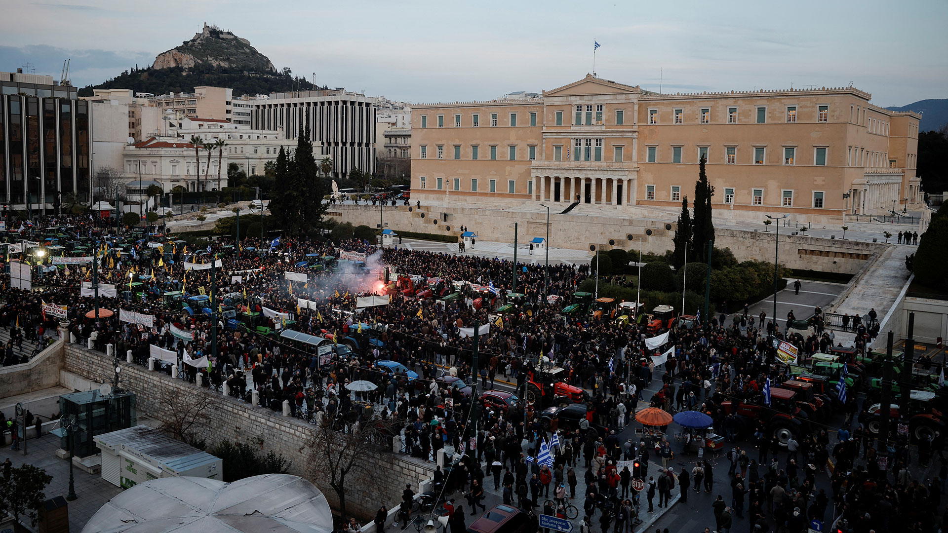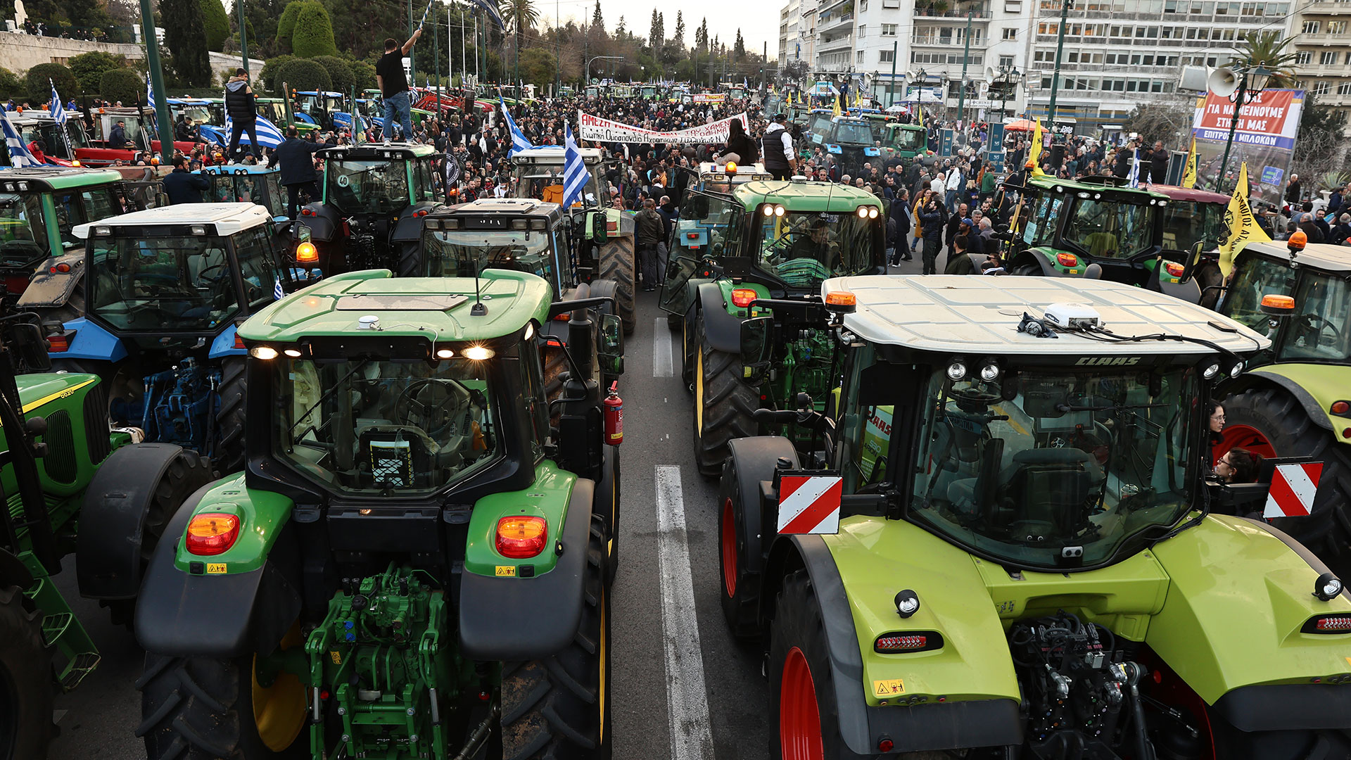 Μπροστά από το Κοινοβούλιο, η Λεωφόρος Βασιλίσσης Σοφίας είναι γεμάτη από τρακτέρ και επαγγελματικά οχήματα και ο κόσμος πολύς, αφού στους διαδηλωτές έχουν προστεθεί ομοσπονδίες, σωματεία και συνδικάτα εργαζομένων από δεκάδες τομείς, που βρίσκονται στο Σύνταγμα για να συμπαρασταθούν στους αγρότες, τους οποίους υποδέχτηκαν με το σύνθημα: «Εργατιά, αγροτιά ενωμένοι μια γροθιά»