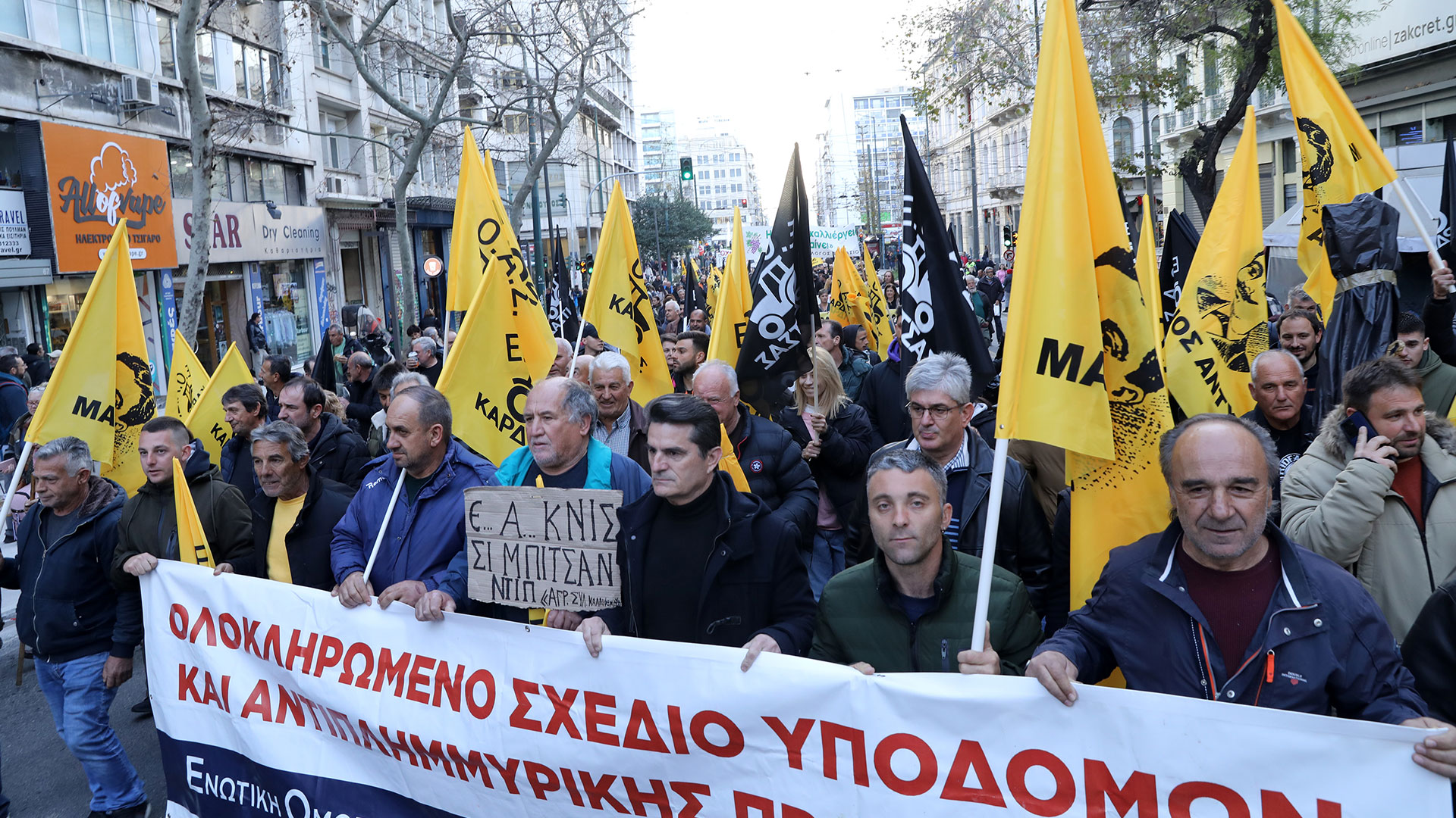 Σωματεία εργαζομένων και αγρότες φτάνουν τώρα με πορεία στο Σύνταγμα