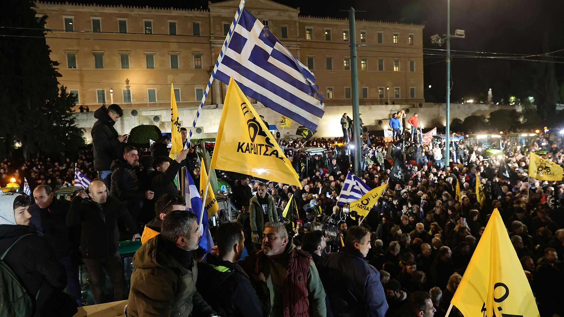 Αγρότες από τη Θήβα μπροστά από το κτίριο της Βουλής