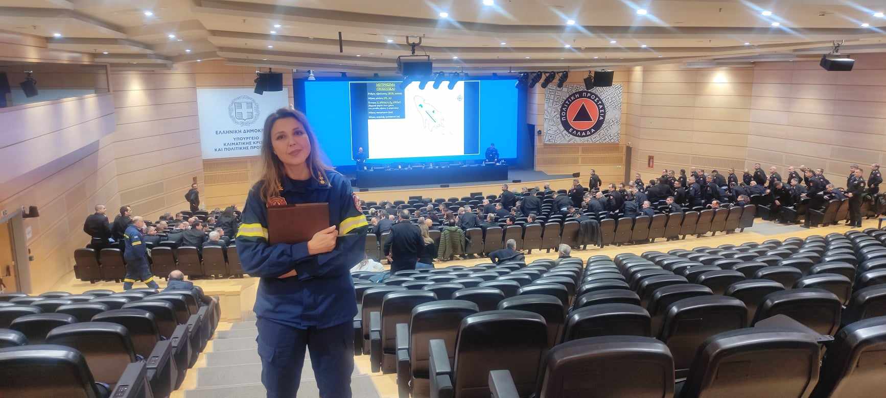 Η αντιπύραρχος Μαρία Ελένη Φωτοπούλου, διευθύντρια εκπαίδευσης του Αρχηγείου της Πυροσβεστικής, μας λέει πως «οι ανώτεροι αξιωματικοί που βρίσκονται εδώ θα εκπαιδεύσουν στη συνέχεια τους πυροσβέστες και τους εθελοντές του σώματος στις περιοχές τους. Οι ίδιοι, θα ενημερώσουν επίσης το προσωπικό κρίσιμων υπηρεσιών – ΕΛΑΣ, ΟΤΑ, νοσοκομεία, ΕΚΑΒ κ.τ.λ. Οι παραπάνω συνεργασίες χρειάζονται ανάπτυξη και οργάνωση».
