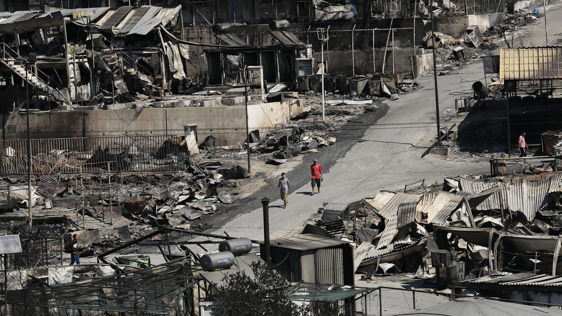 Η φωτιά στον υπερκορεσμένο καταυλισμό, όπου διέμενε τετραπλάσιος κόσμος σε σχέση με τη χωρητικότητά του, είχε ξεκινήσει έπειτα από ταραχές τη νύχτα της 8ης Σεπτεμβρίου 2020, κατά την περίοδο της πανδημίας της COVID-19. Πέντε ημέρες μετά την καταστροφή, ένας 42χρονος Αφγανός κατέθεσε στην Υποδιεύθυνση Ασφάλειας Μυτιλήνης λέγοντας ότι η φωτιά είχε προκληθεί από μια ομάδα συμπατριωτών του. Κατονόμασε πέντε άτομα ως εμπρηστές, τα οποία συνελήφθησαν. Ενας ακόμη ταυτοποιήθηκε από τους αστυνομικούς από βίντεο που αναρτήθηκε στο Facebook. Σύμφωνα με συνήγορό του, το βίντεο ήταν «θολό και φαινόταν μόνο η πλάτη του ατόμου», οπότε δεν ήταν δυνατό να προκύψει και η ταυτότητα του δράστη.