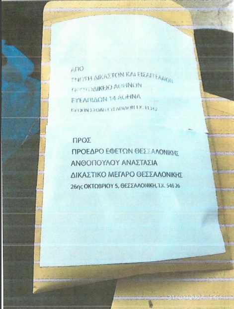 Υπενθυμίζεται ότι ο εν λόγω φάκελος έμεινε για περίπου ένα δεκαήμερο στο γραφείο της Προέδρου Εφετών, που απουσίαζε με άδεια, και εντοπίστηκε κατά την επιστροφή της, χάρη στην παρατηρητικότητα του συζύγου της ο οποίος είναι απόστρατος των Ενόπλων Δυνάμεων.