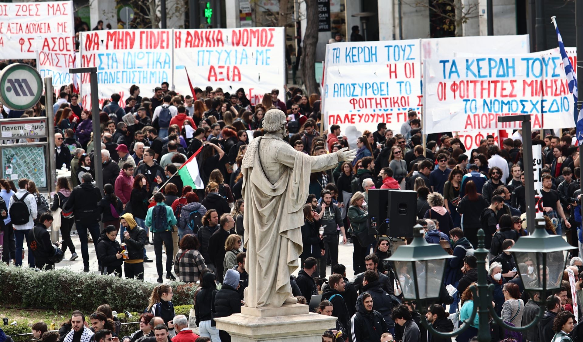 Με κεντρικό σύνθημα «Η πλειοψηφία μίλησε. Οχι στα ιδιωτικά πανεπιστήμια. Πτυχία με αξία. Δωρεάν σπουδές», φοιτητικοί σύλλογοι από όλη την Ελλάδα συγκεντρώθηκαν στα Προπύλαια και έχουν ξεκινήσει πορεία μέχρι τη Βουλή.