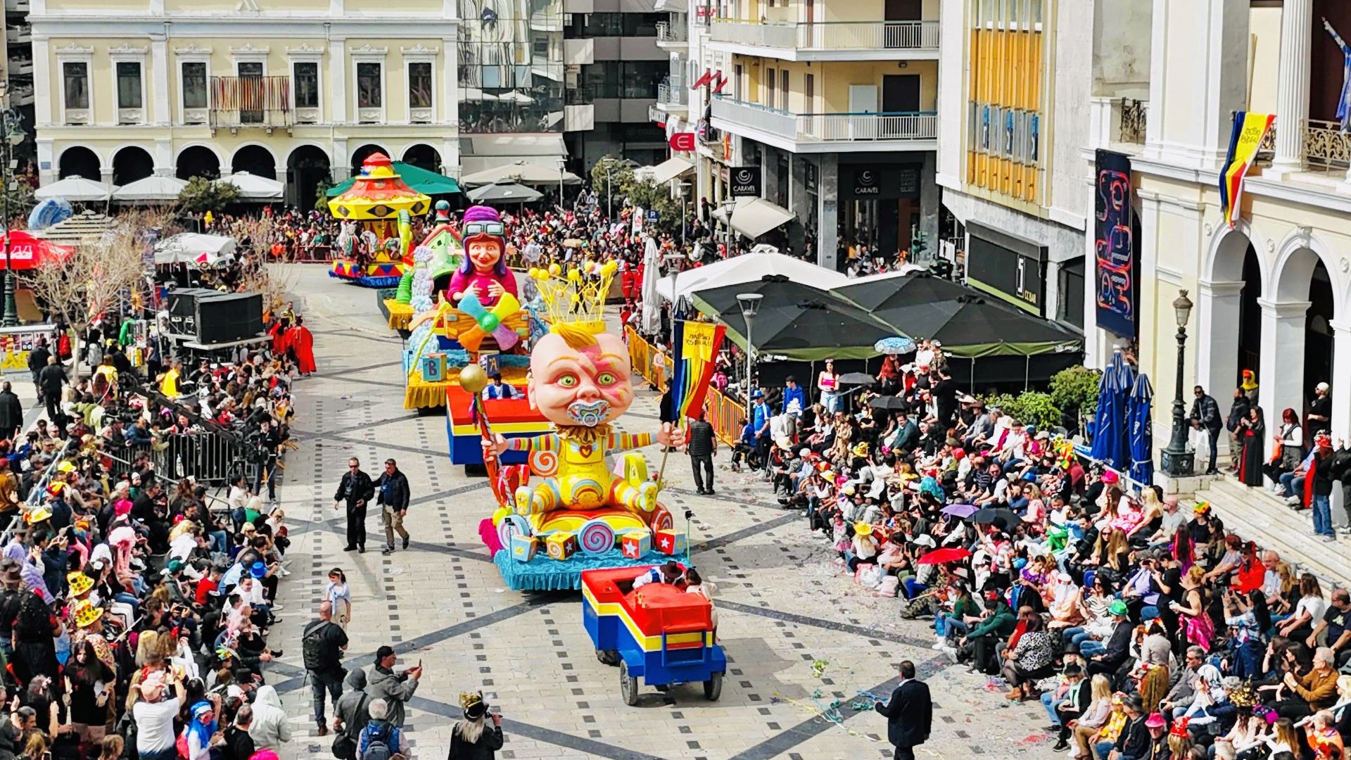 Οι χιλιάδες καρναβαλιστές με πολύχρωμη και χειμαρρώδη ορμή, δημιούργησαν ένα ποτάμι κεφιού, μαγνητίζοντας τα βλέμματα των χιλιάδων θεατών, που είχαν κατακλύσει τα πεζοδρόμια, την πλατεία Γεωργίου και τα μπαλκόνια των πολυκατοικιών του κέντρου της πόλης.