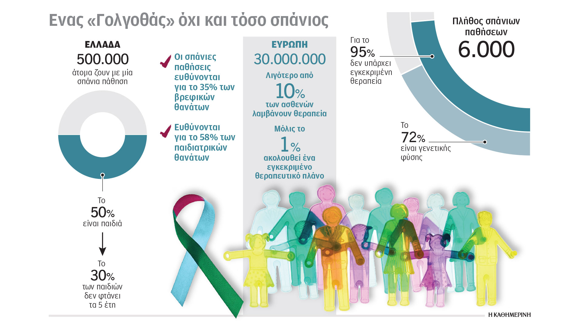 Δυστυχώς, οι ασθενείς με σπάνιες ασθένειες που έχουν την ευκαιρία μιας θεραπείας είναι η μειονότητα, καθώς για το 95% των ασθενειών δεν διατίθεται κανένα θεραπευτικό σχήμα. «Πολύ λίγοι παίρνουν μόνον φάρμακα που θεραπεύουν, καθυστερούν την εξέλιξη της νόσου ή βελτιώνουν την ποιότητα ζωής», σημειώνει ο κ. Αθανασίου, που έχει παιδί με μυϊκή δυστροφία duchenne. Συχνά, αυτά τα σκευάσματα είναι δυσεύρετα. «Δεν πρόκειται για έλλειψη, αλλά για απουσία σχεδιασμού», απαντά ο πρόεδρος της Ενωσης. «Ο αριθμός των πασχόντων είναι συγκεκριμένος και αντίστοιχα οι ανάγκες τους, το υπουργείο έχει τη δυνατότητα να παραγγέλνει εγκαίρως συγκεκριμένες ποσότητες και να κάνει σχετικές διαπραγματεύσεις για την τιμή των φαρμάκων». Ακριβώς επειδή οι ασθενείς του κάθε σπάνιου νοσήματος είναι μετρημένοι στα δάκτυλα και έχουν γενετικές διαγνώσεις, «δεν είναι ρεαλιστικό το ενδεχόμενο της υπερσυνταγογράφησης, για το οποίο έγινε λόγος τις προηγούμενες μέρες», τονίζει ο κ. Αθανασίου. Στο πλαίσιο αυτό, άλλωστε, η Ενωση έχει πολλάκις προτείνει τη θέσπιση ενός Μητρώου Σπανίων Ασθενών αλλά και την εφαρμογή ενός εθνικού σχεδίου δράσης για τα σπάνια νοσήματα. Τέλος, εκφράζεται το αίτημα να συμμετάσχει η Ενωση στις προγραμματισμένες συναντήσεις στο υπουργείο Υγείας μαζί με όλους τους εμπλεκόμενους φορείς, όπως γίνεται στις επιτροπές του ΕΜΑ.