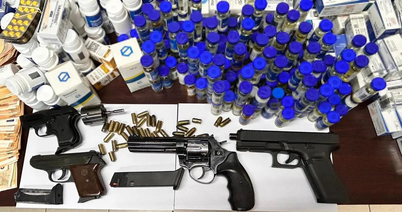 Μεταξύ άλλων, βρέθηκαν και κατασχέθηκαν περισσότερα από 22.000 δισκία – αμπούλες που περιείχαν αναβολικές και άλλες παράνομες φαρμακευτικές ουσίες, 21 πακέτα με απαγορευμένα σκευάσματα, 773,6 γραμμάρια ακατέργαστης κάνναβης και πλήθος ναρκωτικών δισκίων.