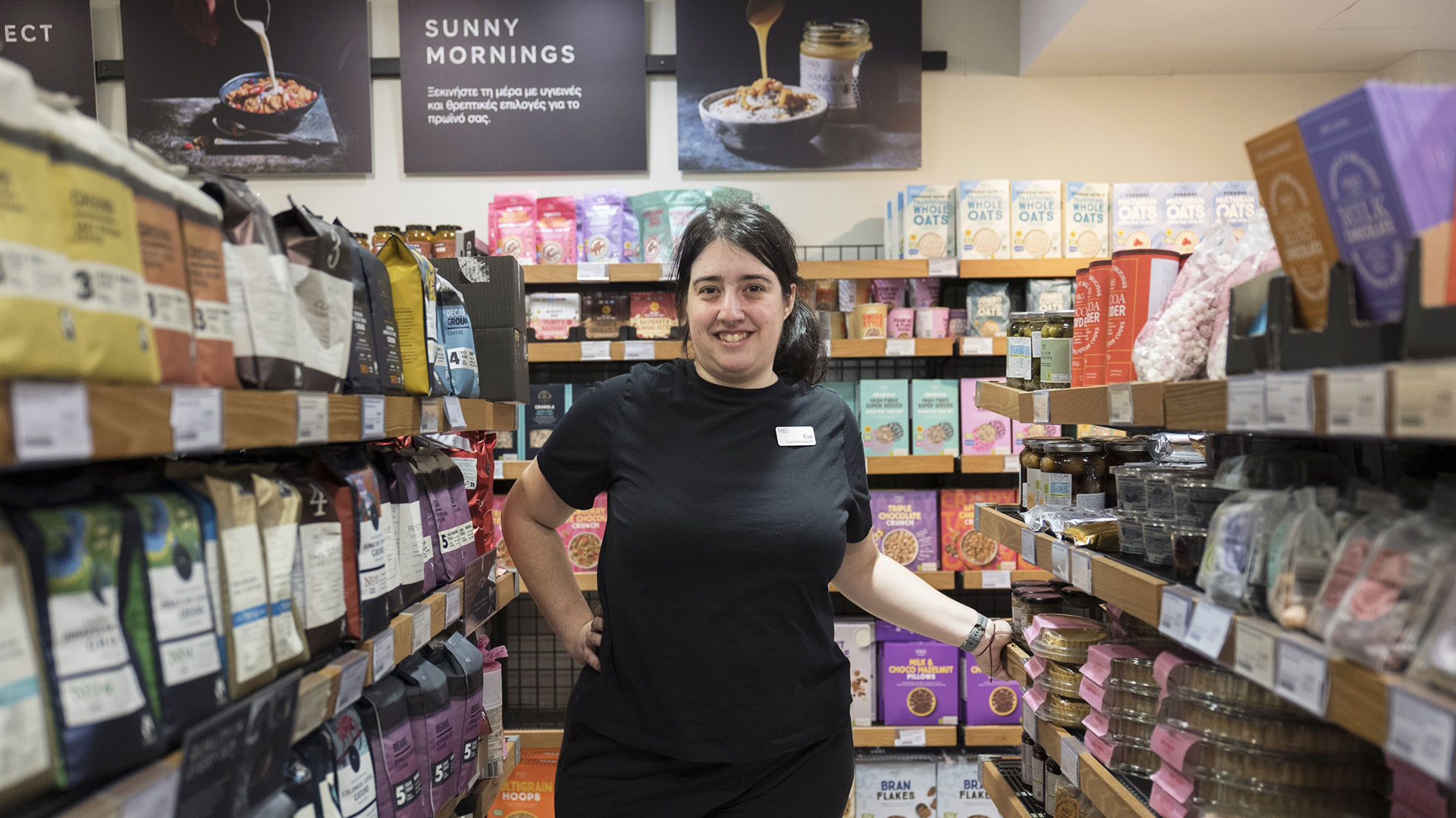 «Από το γραφείο μου περνούν καθημερινά δεκάδες υποψήφιοι για συνέντευξη, όσο μιλάμε βλέπουν απέναντι το Αστεροσκοπείο· η μοναδική που έχει αναγνωρίσει το κτίριο είναι μέχρι σήμερα η Εύα». Η Πολίνα Κουράκου, υπεύθυνη ανθρώπινου δυναμικού της εταιρείας, δεν κρύβει τον ενθουσιασμό της για τη συνεργασία με την Εύα, η οποία έχει ήπια νοητική αναπηρία. «Γρήγορα μου ανοίχτηκε, μου μίλησε για το αγαπημένο της χόμπι». Το πρώτο διάστημα η Εύα υποστηριζόταν στην εργασιακή καθημερινότητά της από έναν εκπαιδευτή του «Μαργαρίτα» και έναν εργαζόμενο του καταστήματος, αλλά σταδιακά έπαψε να τους χρειάζεται και αυτονομήθηκε. «Είναι εξαιρετικά συνεπής, έχει αυτοματοποιήσει τη δουλειά της και μας ενημερώνει συστηματικά για τα πεπραγμένα», αναφέρει η κ. Κουράκου, που δεν αποκλείει το ενδεχόμενο προσεχώς η Εύα να υπογράψει σύμβαση αορίστου χρόνου. «Προτού προχωρήσουμε στην πρόσληψη είχαμε κάνει όλοι εκπαίδευση για να γνωρίζουμε πώς να διαχειριστούμε μια πιθανή κρίση, αλλά μέχρι σήμερα δεν έχει προκύψει καμία».