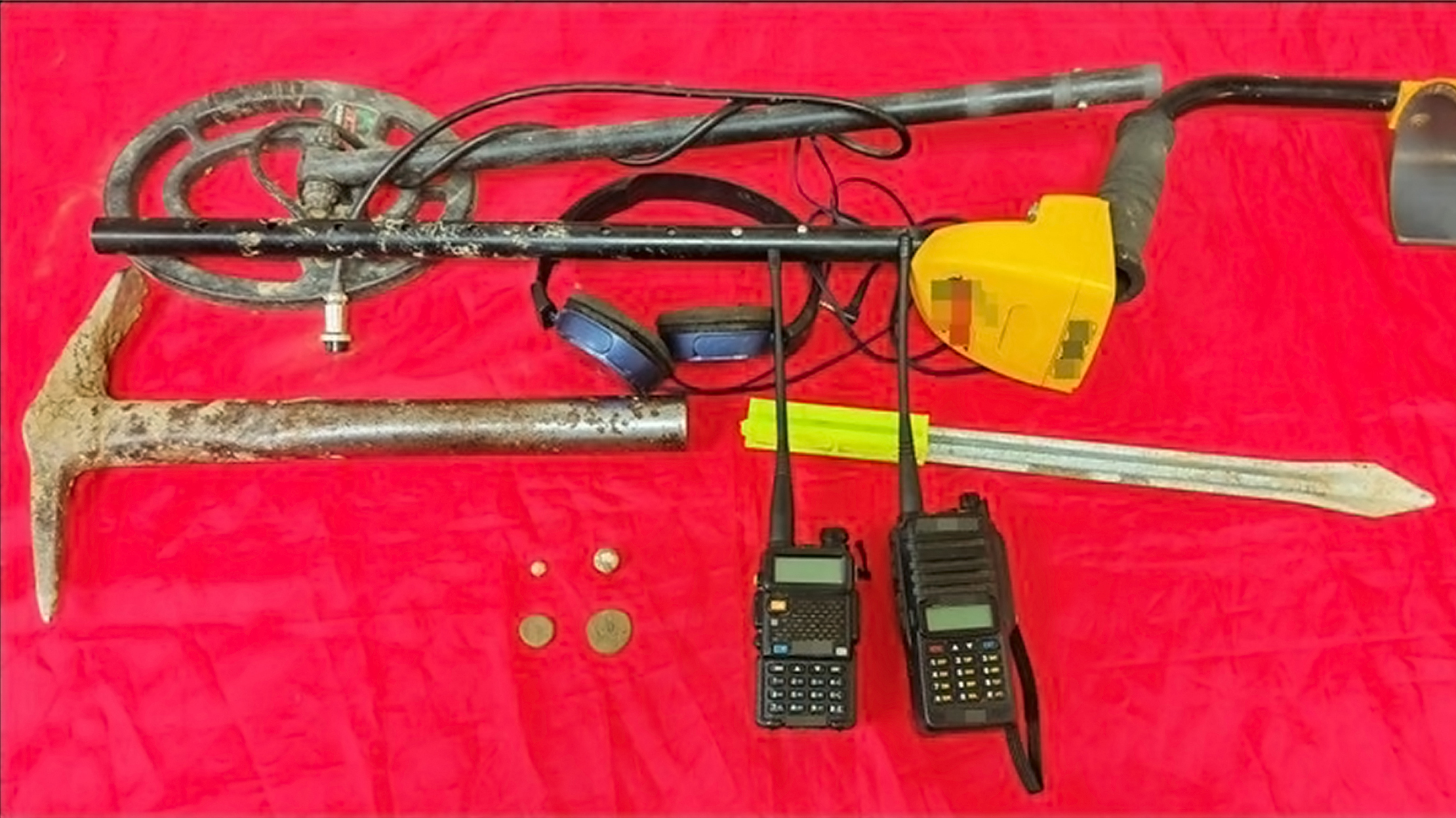 Όπως ανακοίνωσε η ΕΛ.ΑΣ., με τη χρήση ανιχνευτή μετάλλων, ακουστικών, ένα μικρό σκαλιστήρι κι ένα αυτοσχέδιο σκαπτικό εργαλείο, προέβη το βράδυ της περασμένης Τετάρτης σε εξερεύνηση του εδάφους στον συγκεκριμένο αρχαιολογικό χώρο που βρίσκεται σε περιοχή της Καβάλας.