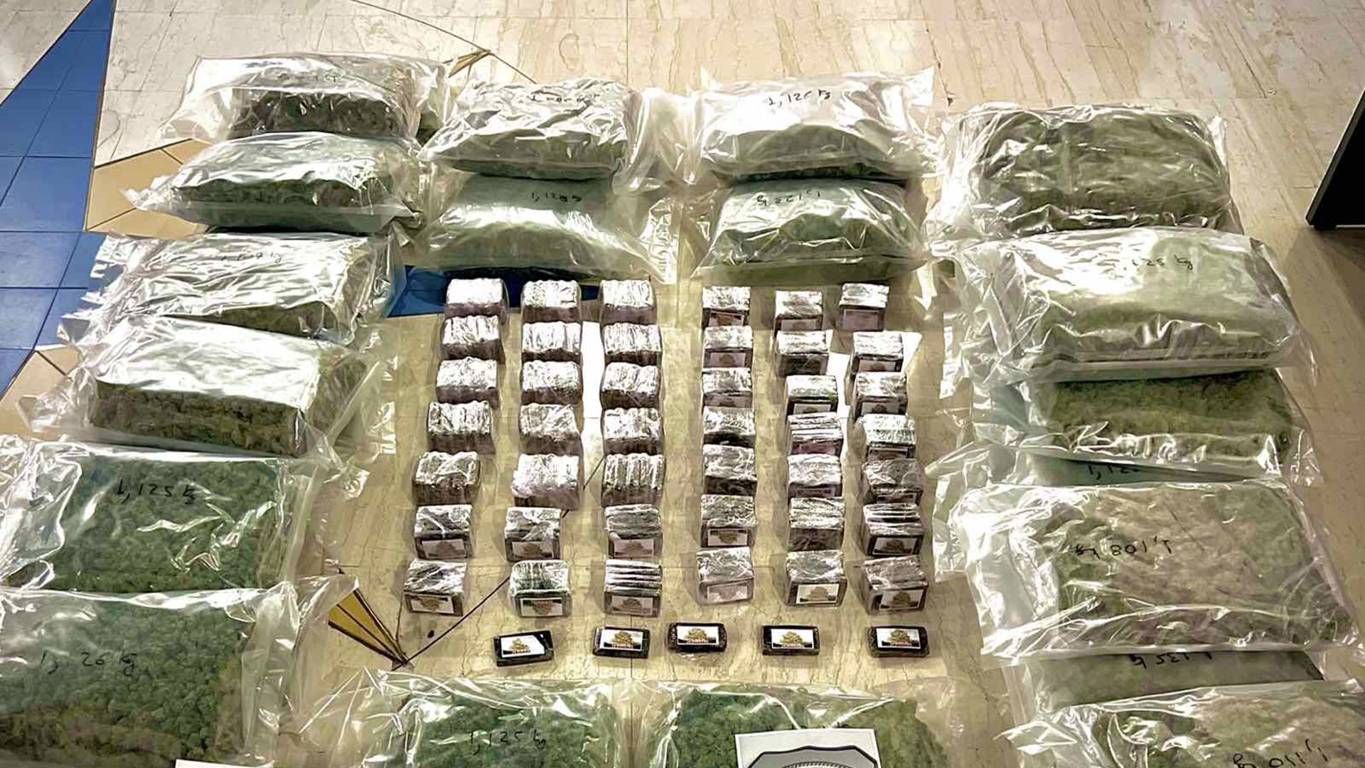 Κατόπιν ένδειξης από τον «Μεζκάλ», τον αστυνομικό σκύλο του Λιμενικού για την ανίχνευση ναρκωτικών, εντοπίστηκαν επιμελώς στοιβαγμένα οκτώ χαρτοκιβώτια, τα οποία περιείχαν 43 πλαστικές συσκευασίες με ακατέργαστη κάνναβη βάρους 48 κιλών, καθώς και 215 συσκευασίες με κατεργασμένη κάνναβη βάρους 21 κιλών.