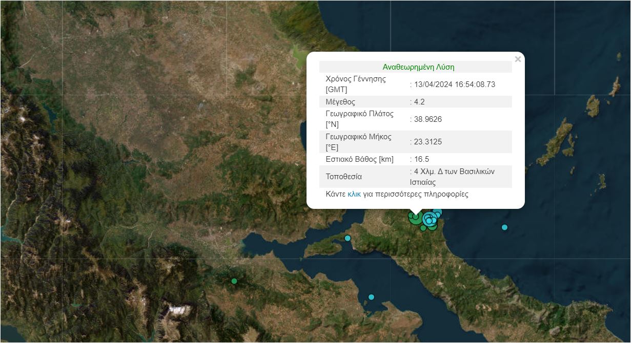 Το επίκεντρο του σεισμού ήταν 4 χιλιόμετρα νοτιοανατολικά των Βασιλικών Ιστιαίας ενώ το εστιακό βάθος του ήταν 16,5 χλμ.