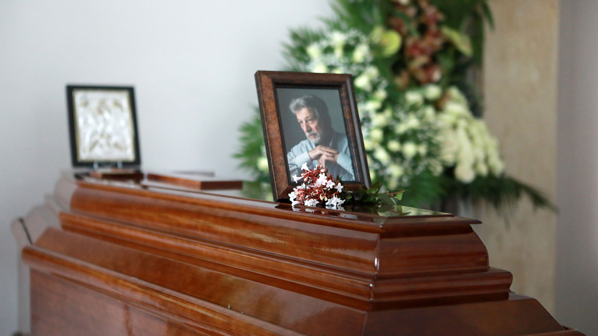 Το «παρών» έδωσε η τελευταία σύζυγός του, Μαρίνα Ψάλτη, καθώς και πολλοί εκπρόσωποι του καλλιτεχνικού κόσμου, μεταξύ των οποίων, ο Σπύρος Μπιμπίλας, η Μαρινέλλα, ο Σταμάτης Φασουλής, ο Γιώργος Νταλάρας και η Καρυοφυλλιά Καραμπέτη.
