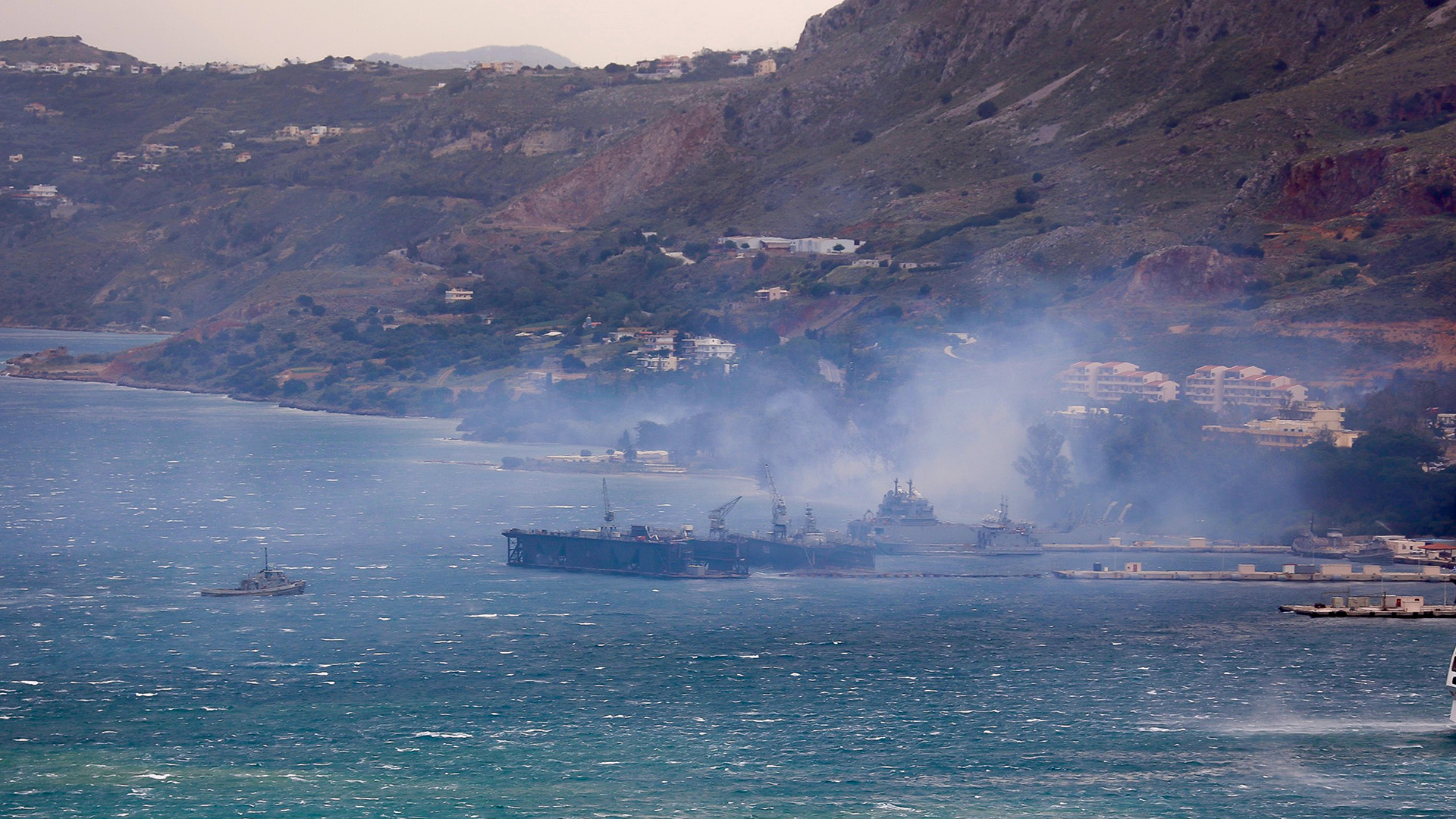 Προληπτικά εκκενώθηκαν νωρίτερα όλες οι εγκαταστάσεις που έχουν να κάνουν με το προσωπικό, δηλαδή οι εγκαταστάσεις του Δημοτικού Σχολείου, του Ναυτικού Νοσοκομείου και της Λέσχης Υπαξιωματικών.