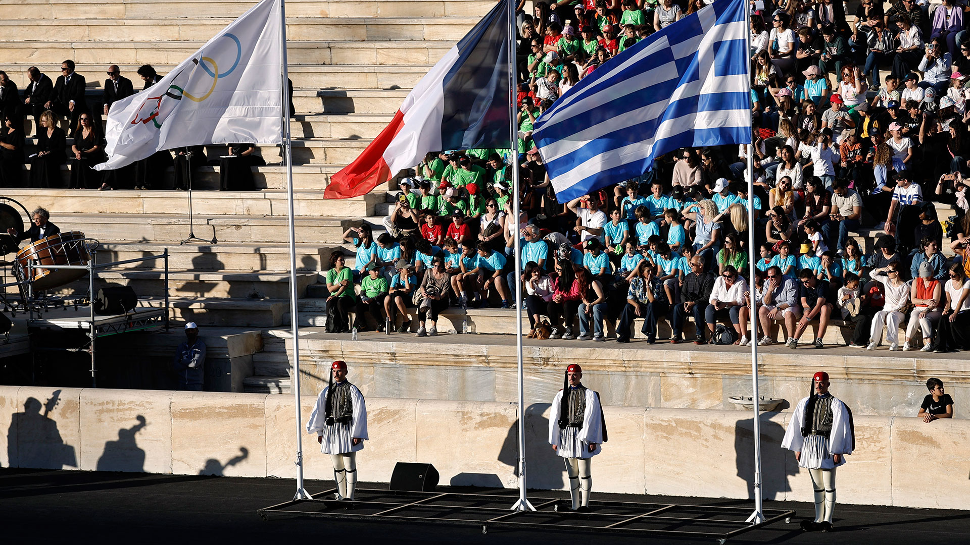 Ολοκληρώθηκε η τελετή παράδοσης της Ολυμπιακής Φλόγας από την Ελλάδα στη Γαλλία και στον πρόεδρο της Οργανωτικής Επιτροπής «Paris 2024» Τόνι Εστανγκέ, στο Καλλιμάρμαρο.