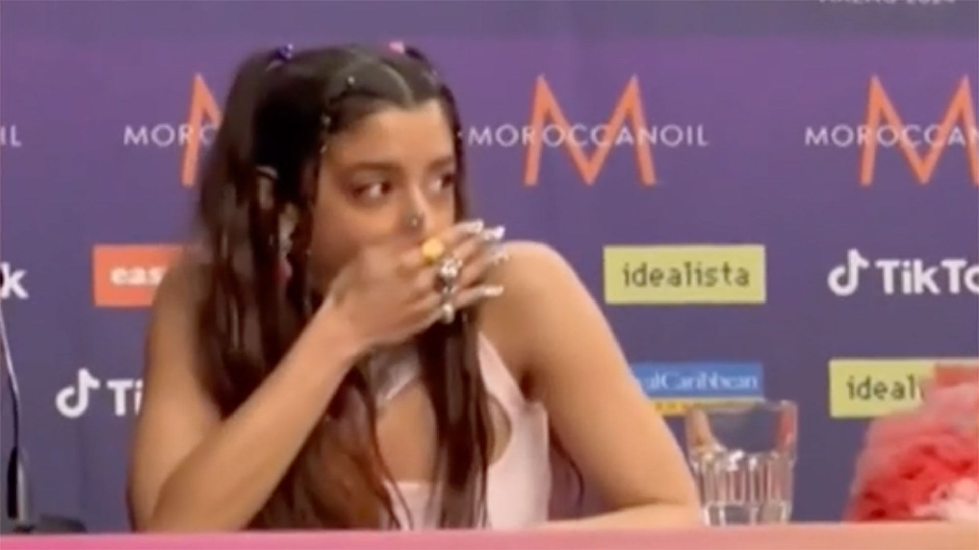 Ποικίλες αντιδράσεις και πολλαπλές ερμηνείες έχουν δοθεί σε βίντεο με τη Μαρίνα Σάττι από συνέντευξη τύπου στη Eurovision.