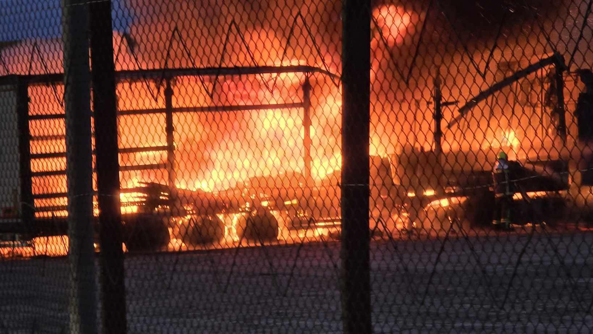 Σύμφωνα με την ΕΡΤ, όπως διαπιστώθηκε, η φωτιά είχε εκδηλωθεί σε ένα φορτηγό αλλά επεκτάθηκε σε άλλα τρία φορτηγά. Αμέσως έφθασαν στο σημείο ισχυρές πυροσβεστικές δυνάμεις οι οποίες έθεσαν τη φωτιά υπό έλεγχο.