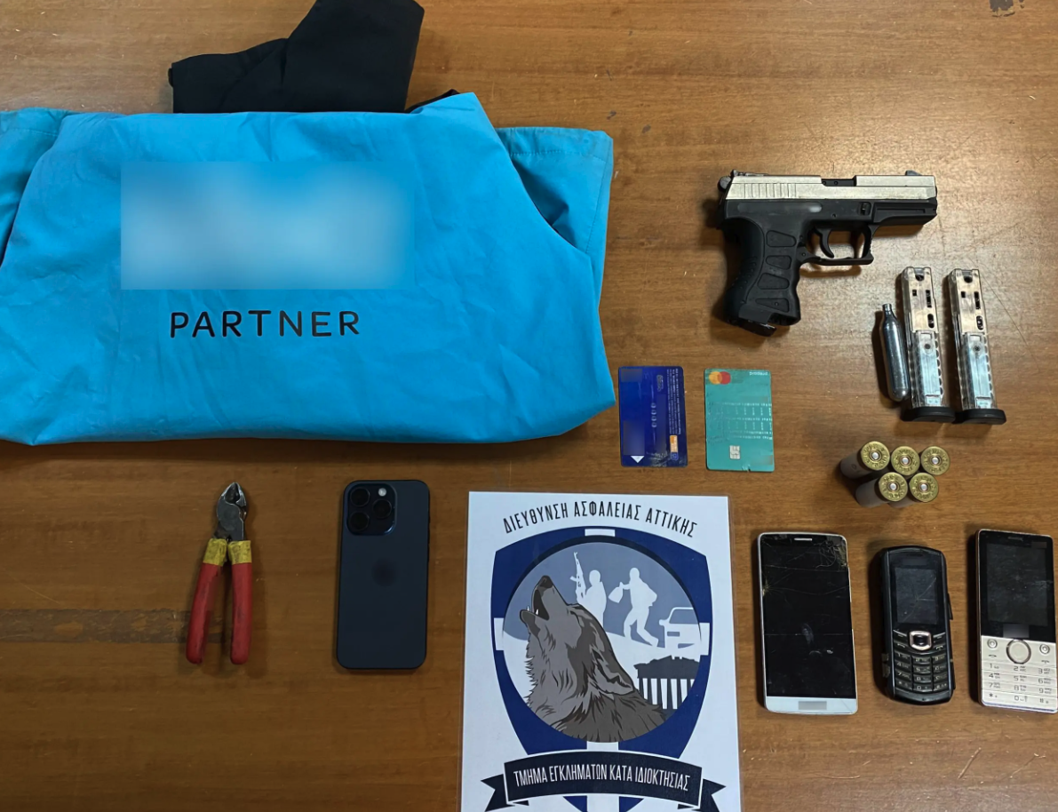 Στο σπίτι του 45χρονου βρέθηκαν και κατασχέθηκαν αεροβόλο πιστόλι, πλήθος φυσιγγίων και ρουχισμός που έχει χρησιμοποιηθεί κατά την διάπραξη των κλοπών. Ο συλληφθείς οδηγήθηκε στον Εισαγγελέα Πλημμελειοδικών Αθηνών.