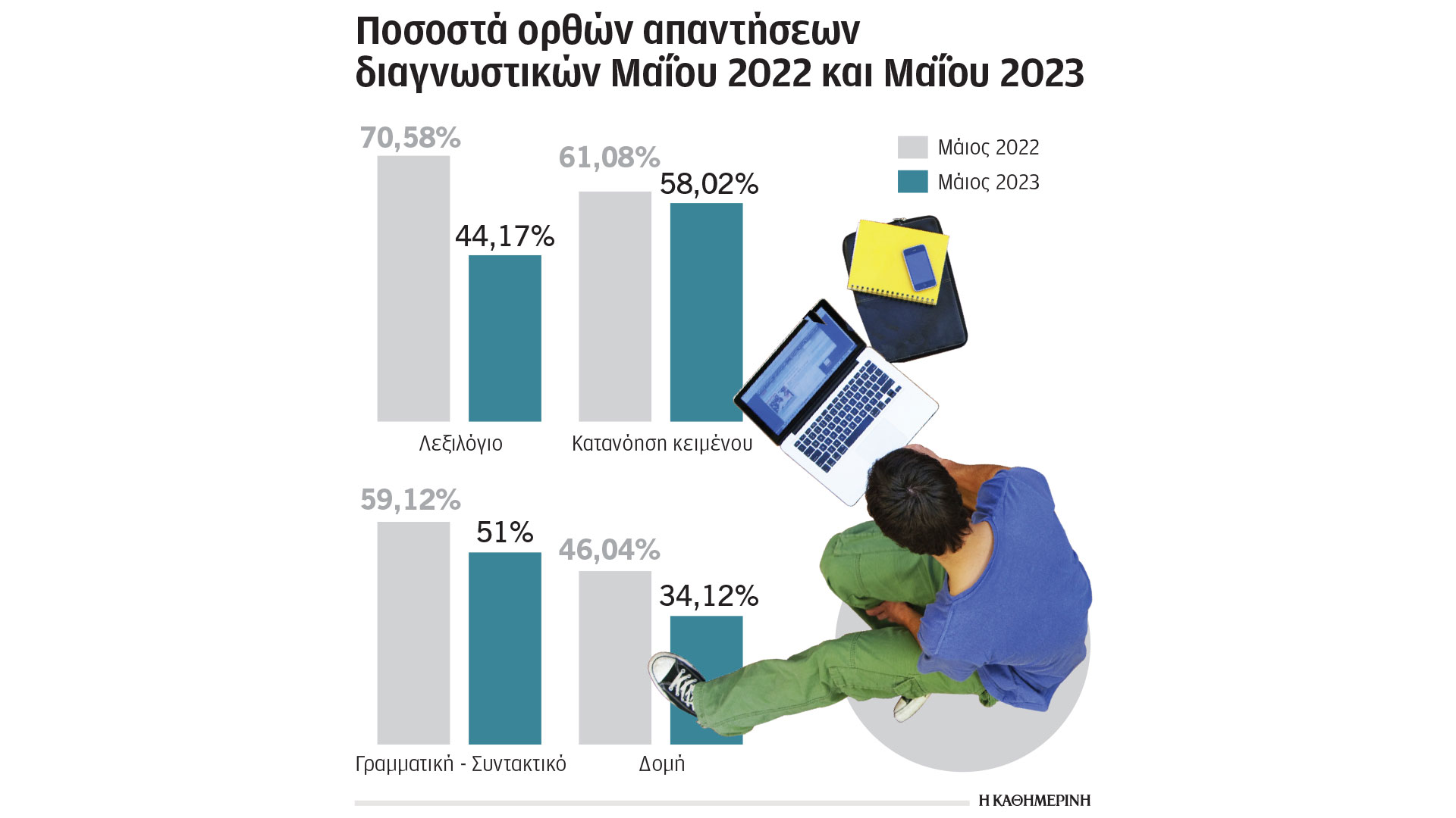 Ενα στα πέντε παιδιά κινδυνεύει να αποφοιτήσει από το γυμνάσιο λειτουργικά αναλφάβητο. Τι σημαίνει αυτό; Δεν θα μπορεί να κατανοεί με επάρκεια τον προφορικό και γραπτό λόγο, να διατυπώνει με σαφήνεια τη σκέψη του, να κάνει αφαιρετικούς συνειρμούς, να αναπτύσσει κριτική σκέψη, να εκμεταλλεύεται ευκαιρίες για βελτίωση των γνωστικών δεξιοτήτων του, όπως ορίζει η UNESCO τον λειτουργικό αναλφαβητισμό. Αυτό αναφέρει η έκθεση της επιστημονικής επιτροπής των εξετάσεων διαγωνιστικού χαρακτήρα που οργανώνονται κάθε χρόνο, της ελληνικής PISA, όπως ονομάζεται. Η έκθεση που δημοσιοποιεί η «Κ» αφορά τον διαγωνισμό του 2023 και στέλνει ηχηρό μήνυμα προς πάσα κατεύθυνση για τις επιτακτικές αλλαγές που πρέπει να γίνουν στην υποχρεωτική εκπαίδευση. Επίσης, επιβεβαιώνει τα στοιχεία στο χθεσινό ρεπορτάζ της εφημερίδας με τίτλο «Το Βατερλώ της “παπαγαλίας”». Μάλιστα προτείνει να επανεξετασθεί το ηλικιακό όριο εγγραφής στην Α΄ Δημοτικού στη χώρα.