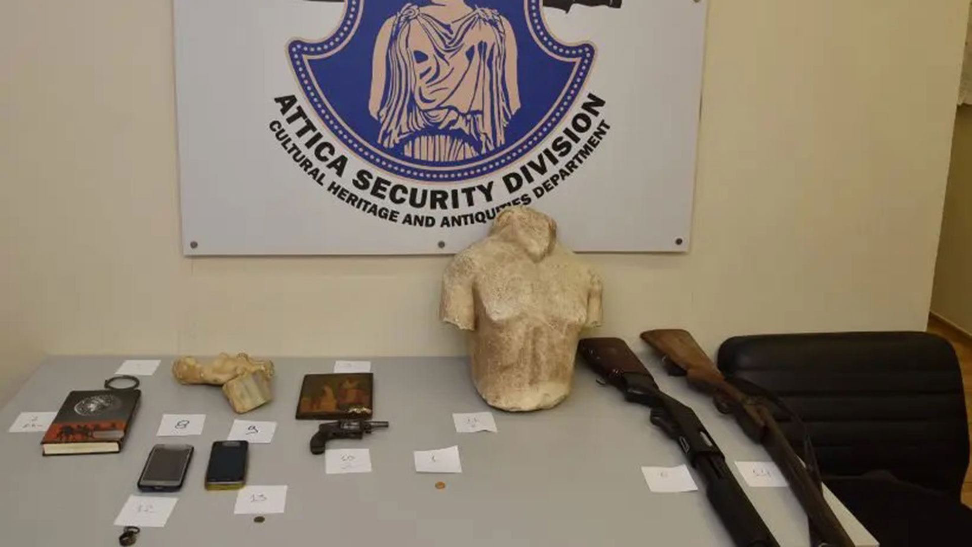 Από σωματικές και κατ’ οίκον έρευνες που διενεργήθηκαν στους κατόχους των αρχαιοτήτων, βρέθηκαν και κατασχέθηκαν, μεταξύ άλλων, το σπάνιο χρυσό νόμισμα Στατήρας του Πτολεμαίου Α’ της Αιγύπτου του 4ου αιώνα π.Χ., με διάμετρο 18 χιλιοστά και βάρος 8,5 γραμμάρια και κορμός Κούρου διαστάσεων 50*34,5 εκατοστών.