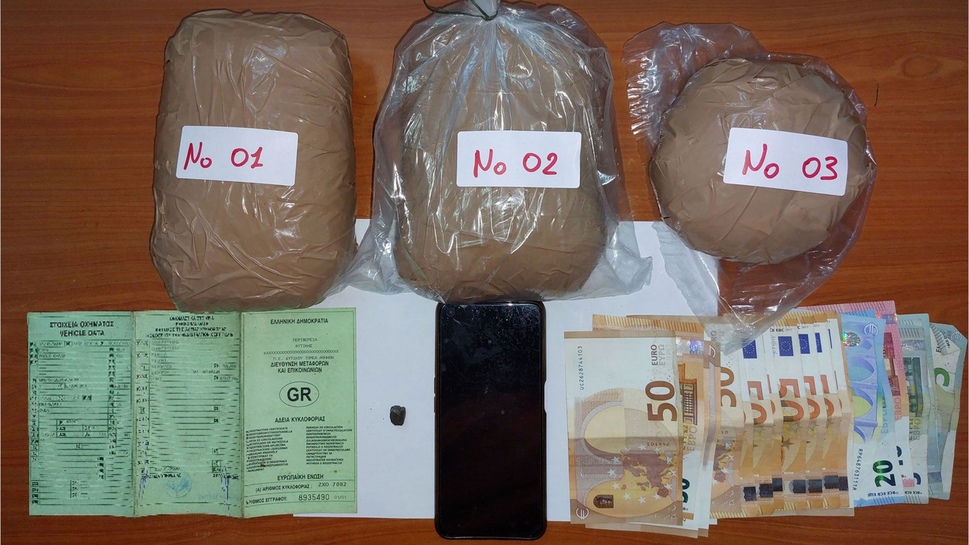Στη συνέχεια, σε έλεγχο εντός οχήματος ιδιοκτησίας του, βρέθηκαν τρεις πλαστικές συσκευασίες με ηρωίνη σε μορφή βράχου, συνολικού μικτού βάρους 2 κιλών και 848 γραμμαρίων. Οι συσκευασίες ήταν επιμελώς κρυμμένες στο εσωτερικό τοίχωμα της πόρτας του πορτ μπαγκάζ.