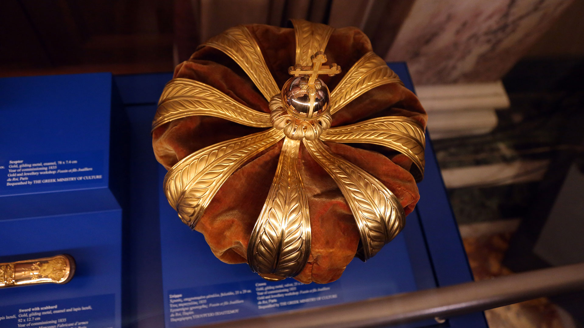 Στην επιβλητική αίθουσα Τροπαίων «Ελευθέριος Βενιζέλος» της Βουλής θα φιλοξενούνται από την Παρασκευή και για τα επόμενα 49 χρόνια, μέχρι το 2073, το στέμμα, το σκήπτρο και το ξίφος του Οθωνα.