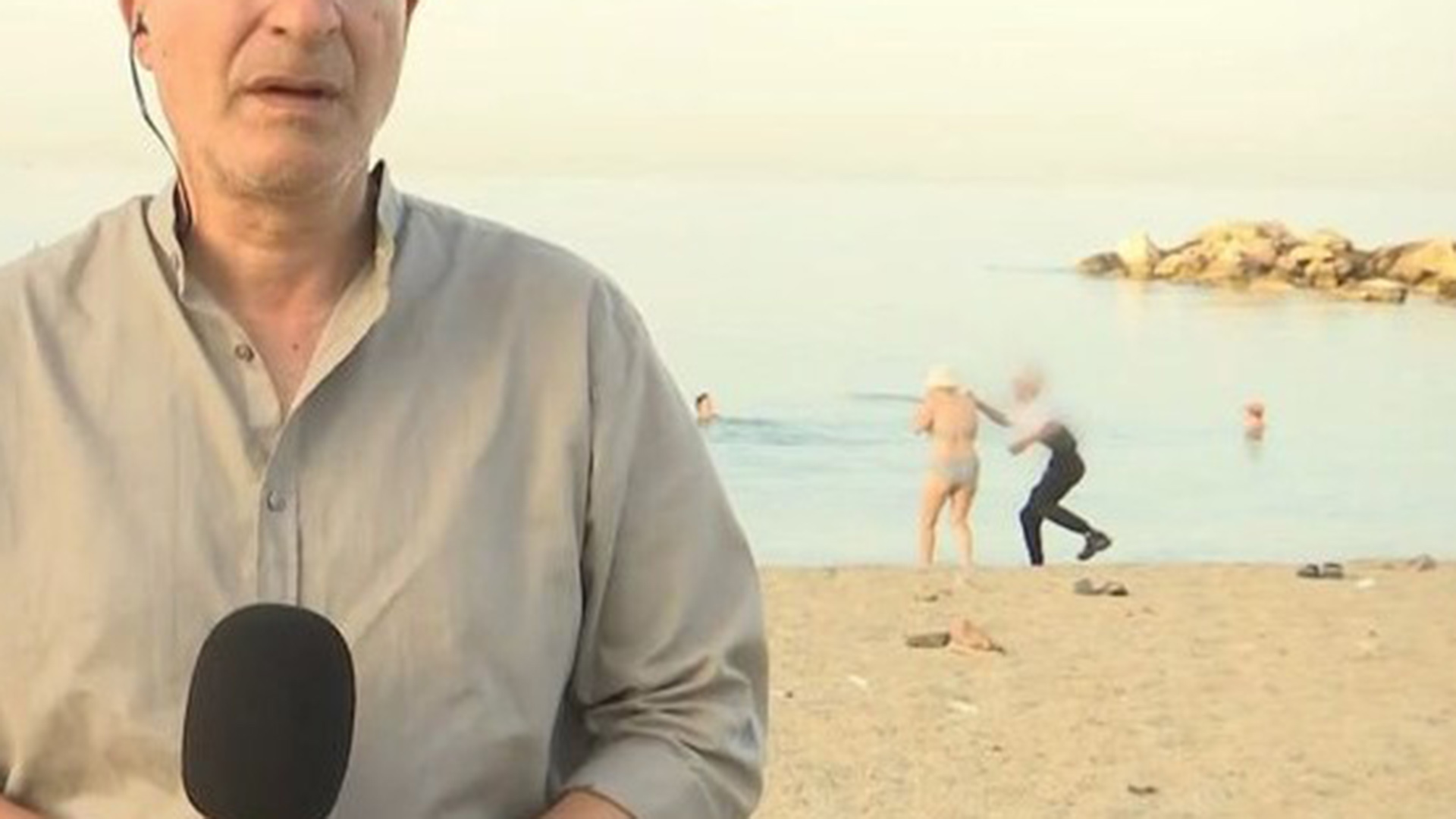 Ενα πρωτοφανές περιστατικό έλαβε χώρα σε παραλία της Αττικής, κατά τη διάρκεια ζωντανής σύνδεσης πρωινής εκπομπής του ΣΚΑΪ, όταν ένας άνδρας άρπαξε τον σταυρό από τον λαιμό λουομένης που κατευθυνόταν προς τη θάλασσα.