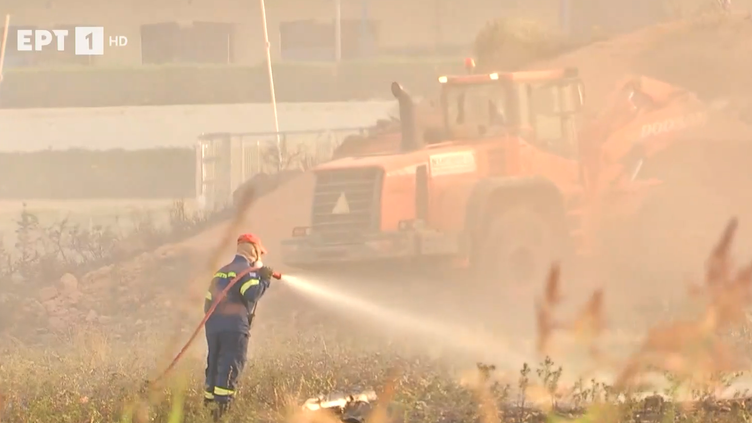 Σύμφωνα με την Πυροσβεστική, η φωτιά καίει ξερά χόρτα.