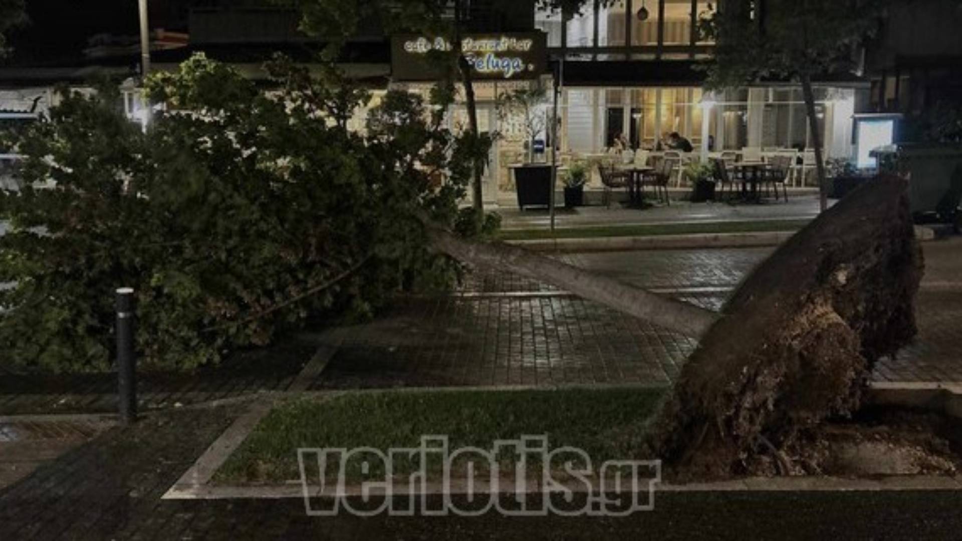Πιο συγκεκριμένα, στην περιοχή παλιό Κτηνιατρείο κοντά στο κέντρο έπεσε πλατάνι πάνω σε τέσσερις κολόνες της ΔΕΗ. Στο γυμνάσιο Μακρυχωρίου έπεσαν πέντε δέντρα στην αυλή του σχολείου.