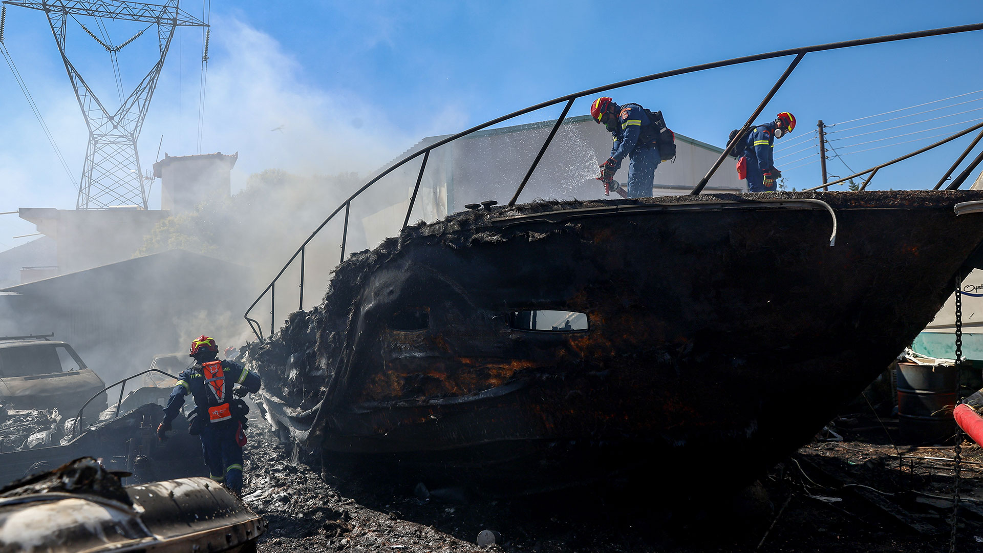 Σύμφωνα με την Πυροσβεστική η φωτιά εκδηλώθηκε αρχικά σε πάρκινγκ σκαφών στο ύψος του Κορωπίου και στη συνέχεια, επεκτάθηκε. Πρόκειται για δύσκολη φωτιά ενώ οι πυροσβεστικές δυνάμεις καταβάλλουν προσπάθειες για να την περιορίσουν.