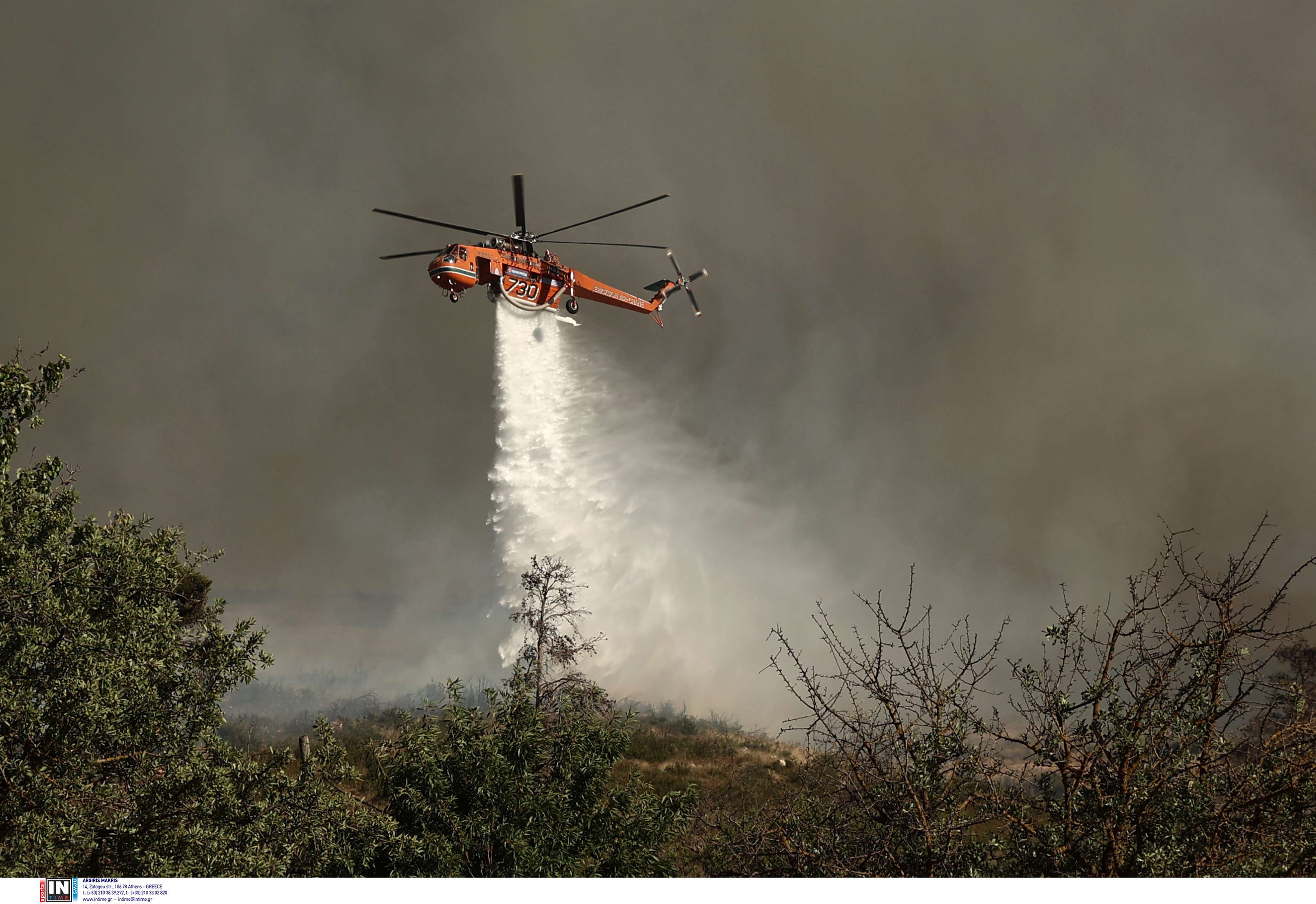 Εικόνες από τις προσπάθειες κατάσβεσης στη Σταμάτα