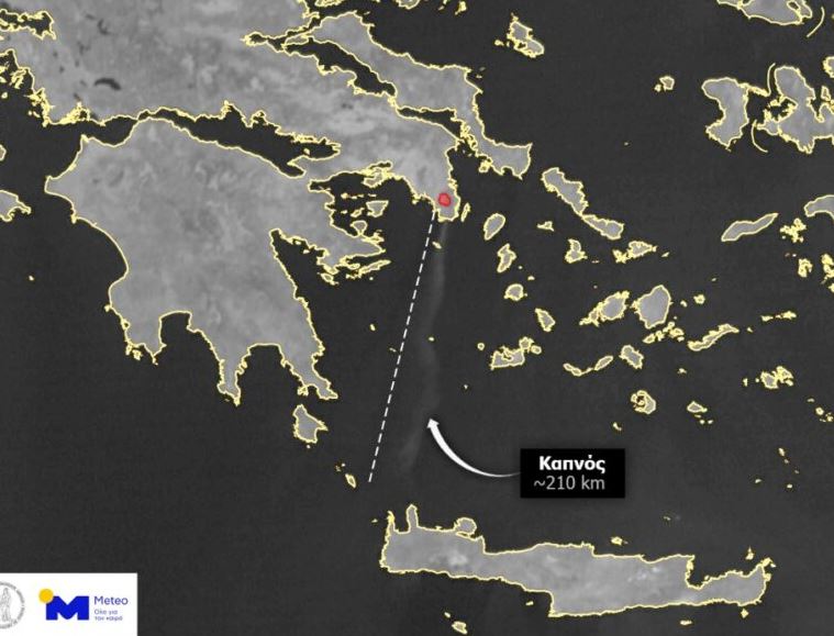 Meteo: Δορυφορική εικόνα με τον καπνό της φωτιάς στην Κερατέα – Κάλυψε απόσταση 210 χλμ.