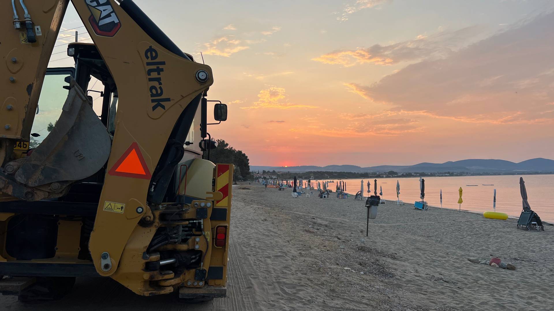 Περισσότερες από εκατό ξαπλώστρες και ομπρέλες απομάκρυναν το πρωί τα συνεργεία του Δήμου Πολυγύρου από την παραλία των Καλυβών.