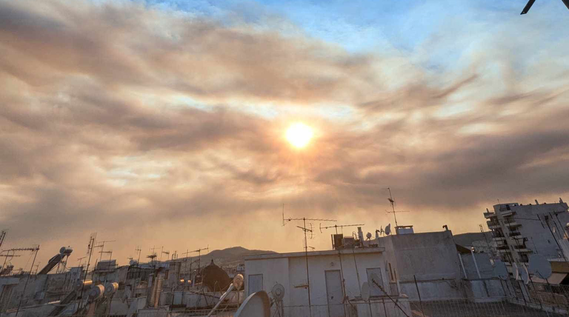 Ορατός στον ουρανό της Αττικής είναι ο καπνός από τη μεγάλη φωτιά στην κεντρική Εύβοια, όπως φαίνεται στις εικόνες από το Forecast Weather Greece.