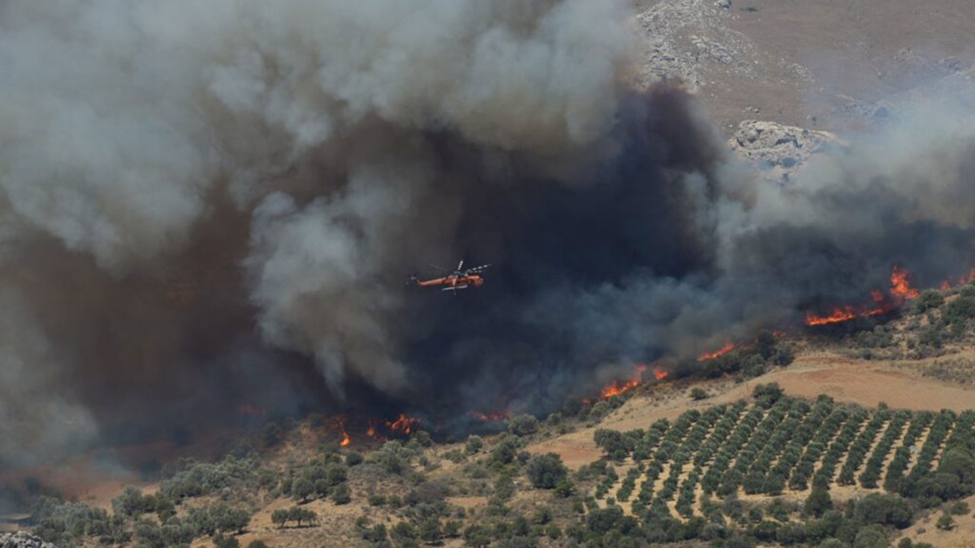 Συνεχίζεται η μάχη των πυροσβεστικών δυνάμεων με τις φλόγες και τους ισχυρούς ανέμους στο Ρέθυμνο.