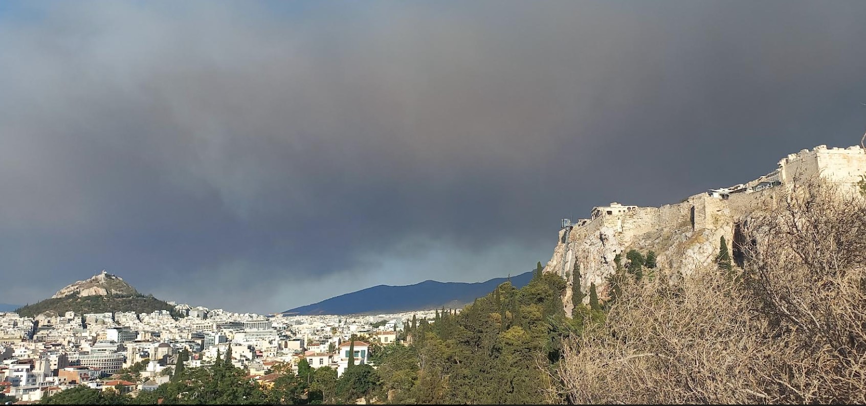«Πνιγμένος» από τον καπνό ο ουρανός της Αττικής