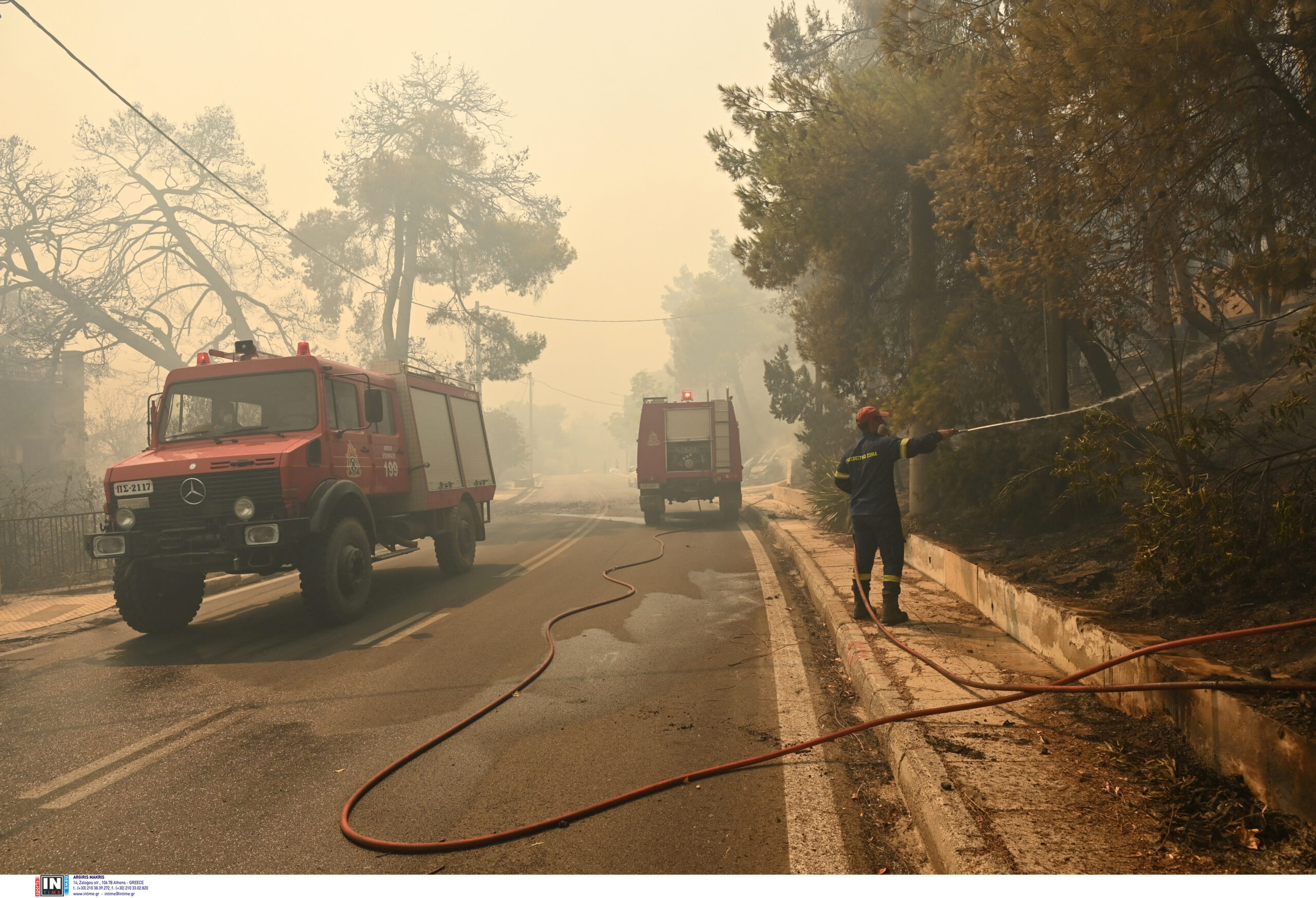 Δύο οχήματα της Πυροσβεστικής κάηκαν δυτικά του Νέου Βουτζά κατά τη διάρκεια κατάσβεσης της τεράστιας πυρκαγιάς που έχει ξεσπάσει στην Αττική.