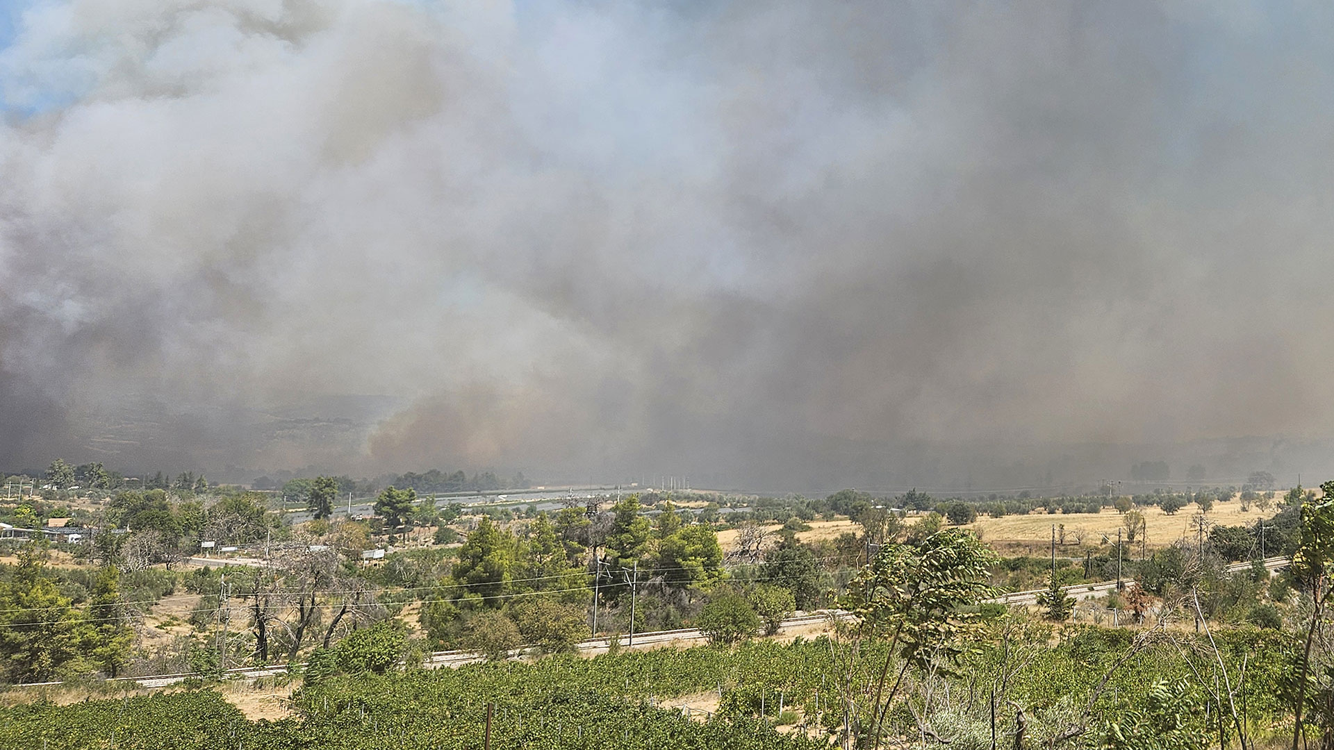 Fire hotspots & thick smoke plume visible from space between 11:00 – 17:30 UTC.