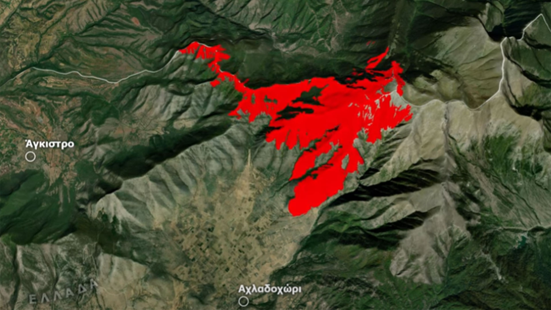 Δορυφορικούς χάρτες από την εξέλιξη της δασικής πυρκαγιάς που καίει για 29 ημέρες στο όρος Ορβηλος στις Σέρρες, στα σύνορα με τη Βουλγαρία, παρουσιάζει το Meteo.