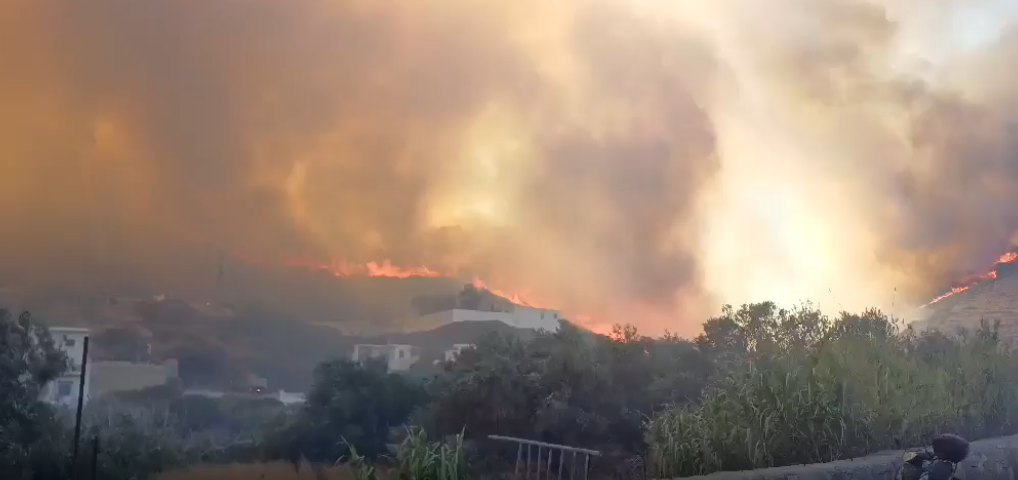 Η φωτιά έχει προκαλέσει γενική διακοπή ρεύματος στο νησί.