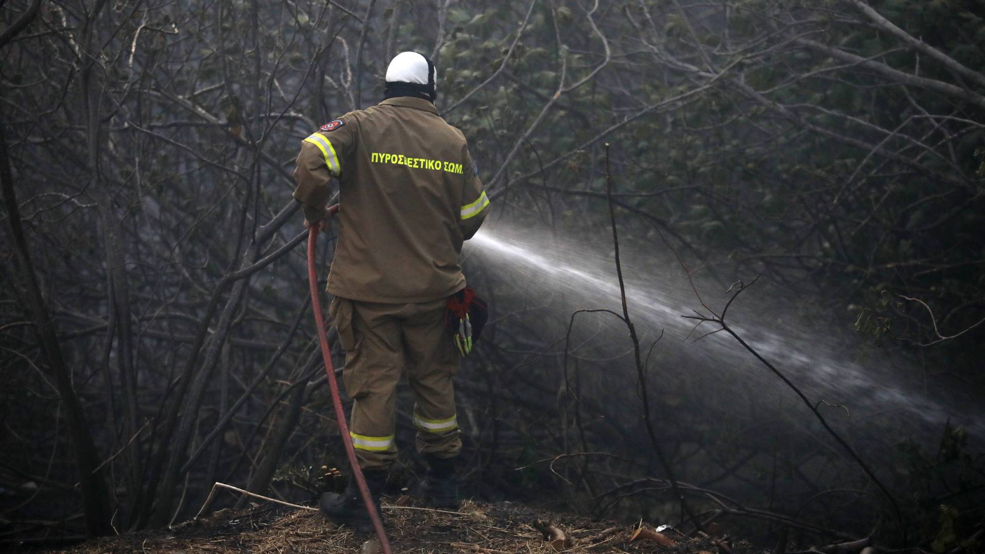 Η φωτιά καίει μόνο πουρνάρια ενώ, σύμφωνα με πληροφορίες της ΕΡΤ, στην περιοχή ξεκίνησε να βρέχει.