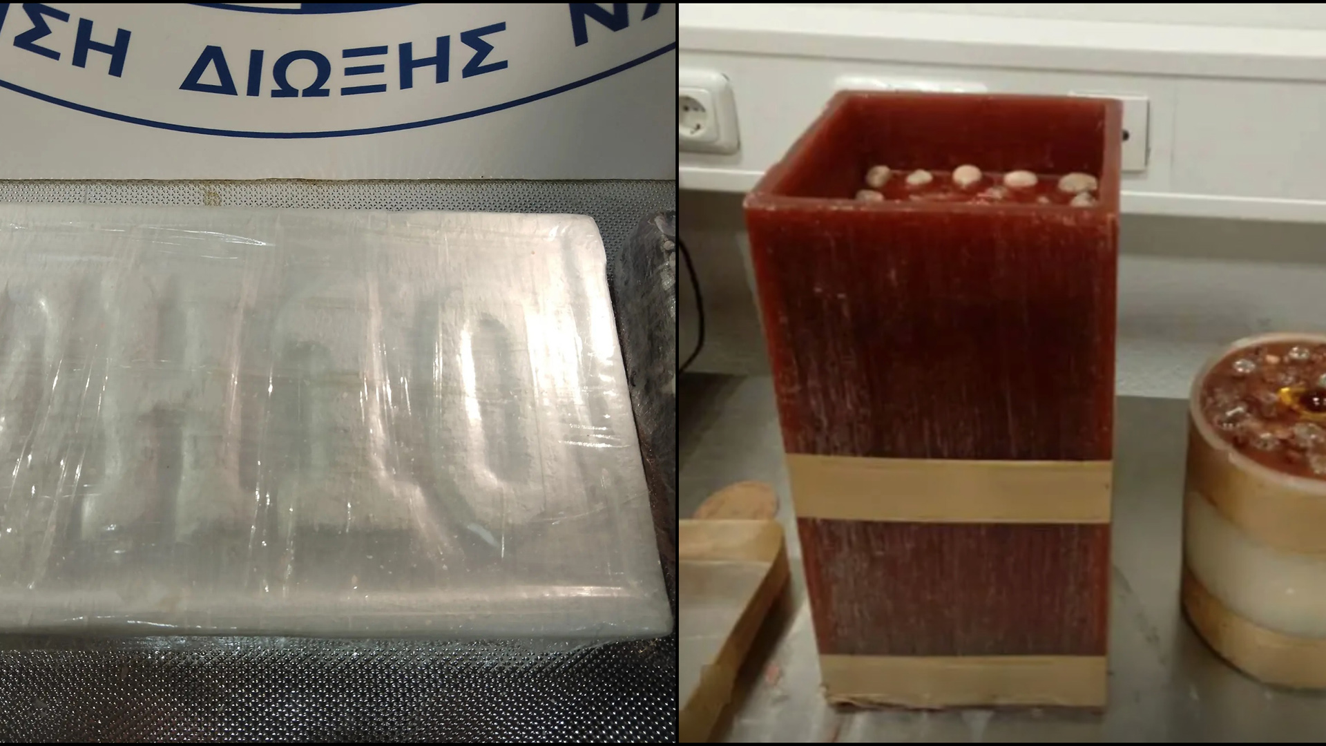 - 5- κιλά και 270 γραμμάρια κοκαΐνης τα οποία βρίσκονταν επιμελώς κρυμμένα εντός διακοσμητικών κεριών,