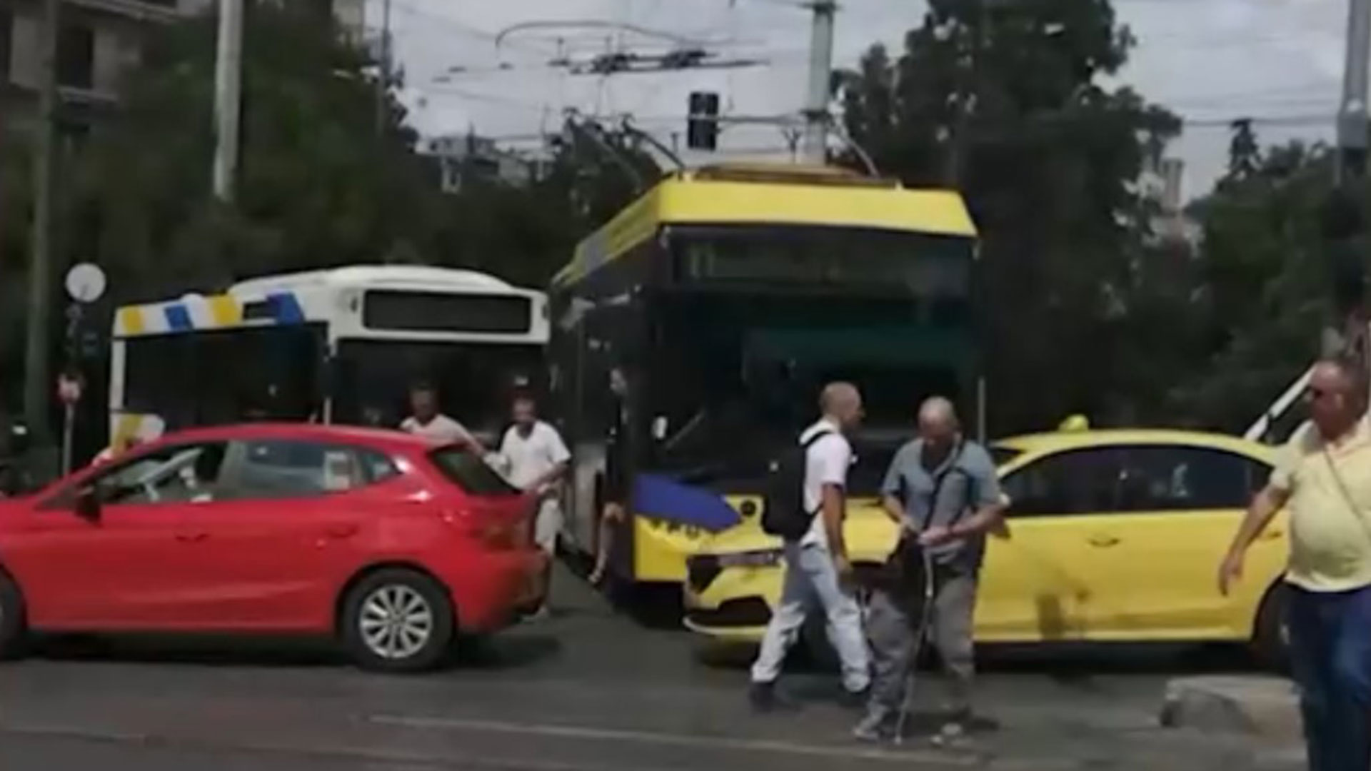 Στα χέρια πιάστηκαν ένας οδηγός λεωφορείου και ένας οδηγός τρόλεϊ, μετά από σύγκρουση των δύο οχημάτων στο Μετς.
