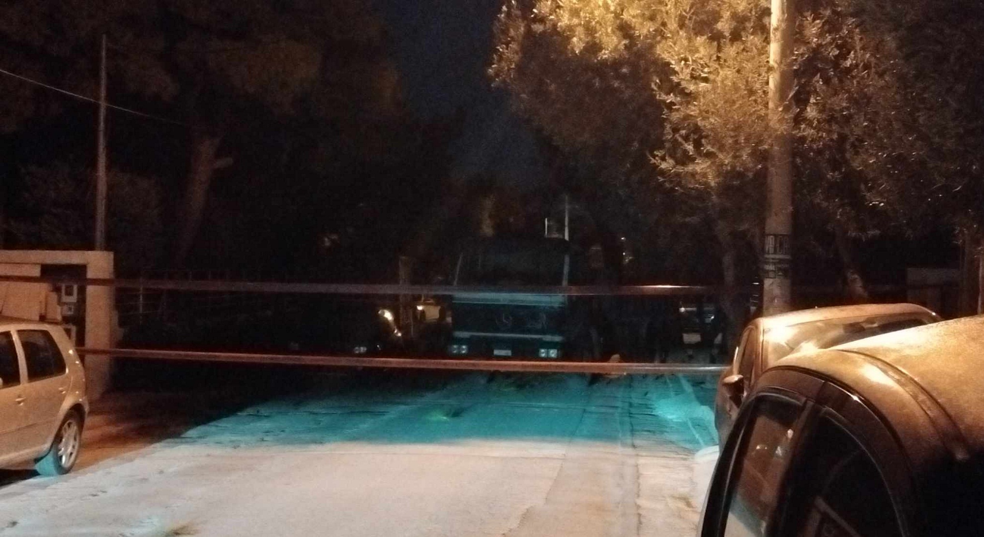 Λίγο πιο κάτω, στην προσπάθειά τους να διαφύγουν, έπεσαν σε ένα δέντρο και εγκατέλειψαν το φορτηγό στη συμβολή των οδών Ανθέμης και Γρηγορίου Λαμπράκη, στα σύνορα του Χαλανδρίου με τον Γέρακα.