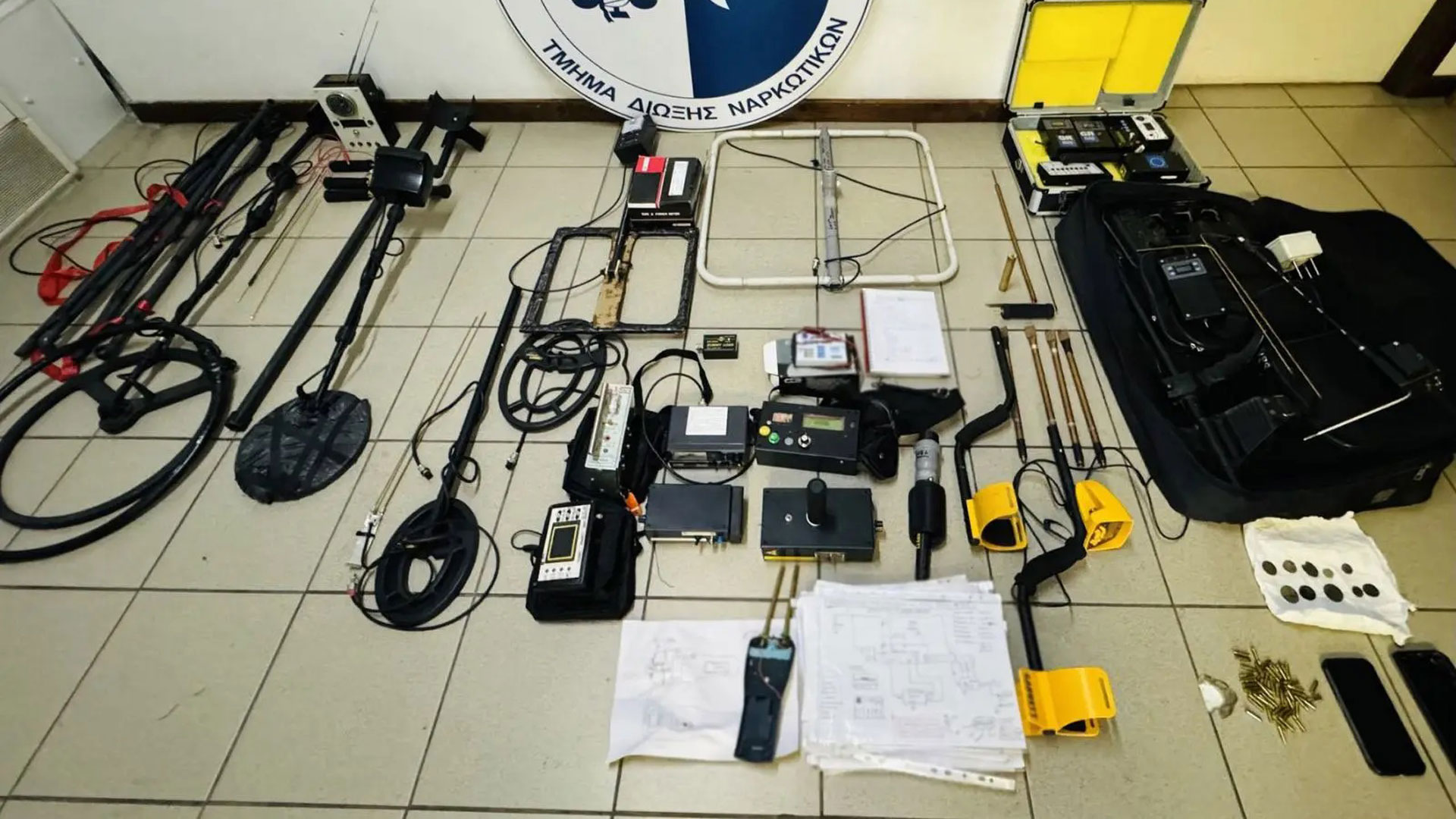 Παράλληλα, διαπιστώθηκε ότι ένας εκ των συλληφθέντων (56χρονος) χρησιμοποιούσε ειδικό χώρο στο σπίτι του, όπου επισκεύαζε, κατασκεύαζε και αναβάθμιζε μηχανήματα ανασκαφών ή άλλα μηχανήματα διασκόπησης του εδάφους, τα οποία διέθετε και προς πώληση σε πλατφόρμες του διαδικτύου.
