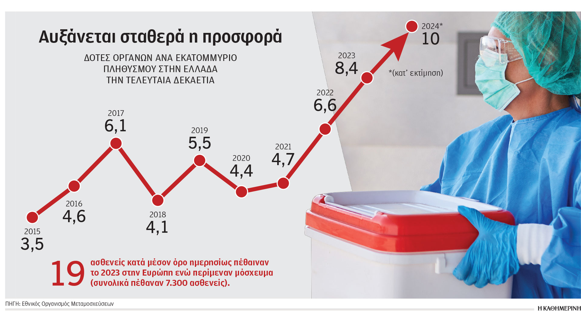 Η προσπάθεια που γίνεται στην Ελλάδα έχει οδηγήσει σε υπερδιπλασιασμό της δωρεάς μέσα σε μία τριετία.