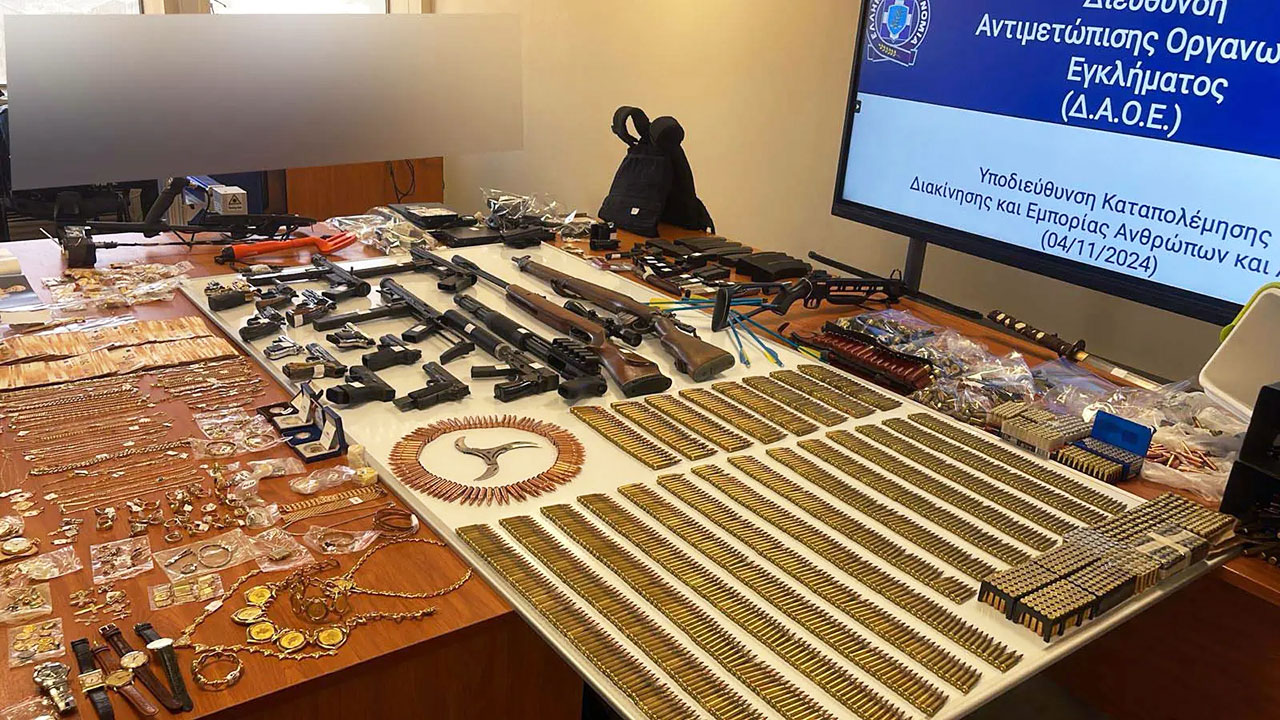 Οπλα και εκρηκτικά προμήθευαν την επονομαζόμενη Greek Mafia οι δύο άνδρες –πατέρας και γιος– που συνελήφθησαν τη Δευτέρα από αστυνομικούς της νεοσύστατης Διεύθυνσης Αντιμετώπισης Οργανωμένου Εγκλήματος (ΔΑΟΕ). Σε ακίνητο στη Μάνδρα αστυνομικοί βρήκαν και κατάσχεσαν μία από τις μεγαλύτερες ποσότητες εκρηκτικών στα αστυνομικά χρονικά: 25 κομμάτια TNT, 60 κιλά αμμωνιοδυναμίτιδα, μεγάλη ποσότητα από βραδύκαυστο φιτίλι και πυροκροτητές. Μεγάλη είναι και η ποσότητα όπλων και πυρομαχικών που βρέθηκαν στα δύο υπόγεια του σπιτιού. Στα κατασχεθέντα συγκαταλέγονται ένα όπλο ελεύθερου σκοπευτή με διόπτρα, ένα ημιαυτόματο όπλο τύπου Scorpion με σιγαστήρα, 6 περίστροφα, 5 πιστόλια και 6.000 σφαίρες διαφόρων διαμετρημάτων – κυρίως καλάσνικοφ. Βρέθηκαν επίσης ανιχνευτές μετάλλων –όπερ σημαίνει ότι πατέρας και γιος ενδεχομένως να δραστηριοποιούνταν ως χρυσοθήρες–, πάνω από 500 χρυσές λίρες Αγγλίας, χρυσές αλυσίδες, βραχιόλια, δαχτυλίδια κ.ά. Σύμφωνα με μια εκδοχή, τα χρυσαφικά δόθηκαν στους συλληφθέντες αντί χρημάτων από σπείρες που προμηθεύτηκαν απ’ αυτούς όπλα, εκρηκτικά κ.ο.κ. Τον πλούσιο κατάλογο των κατασχεθέντων συμπληρώνουν 23.000 ευρώ σε μετρητά, μηχάνημα καταμέτρησης χρημάτων και χειρόγραφες σημειώσεις.