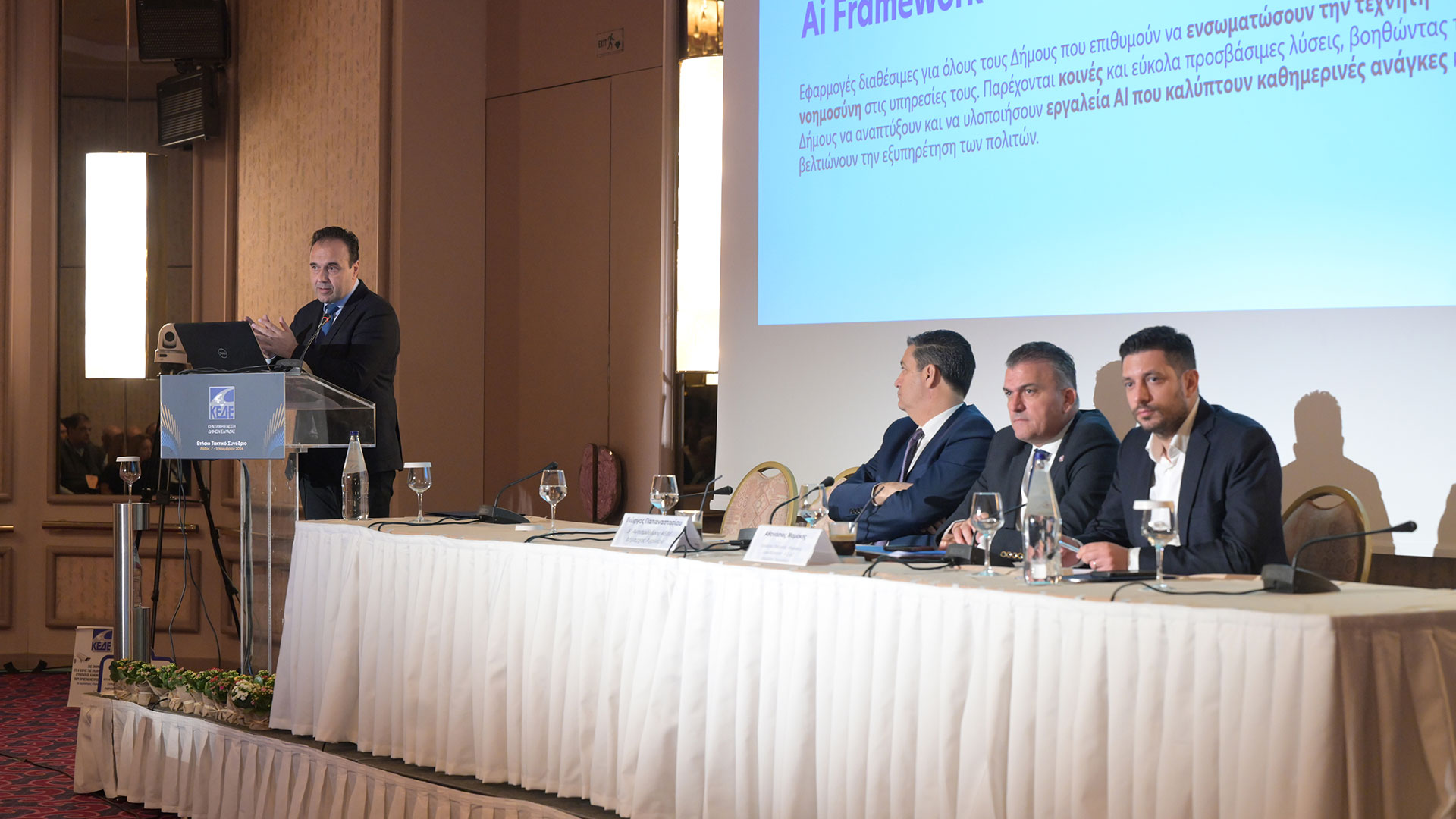 - Στην Κεντρική Συμφωνία Προμήθειας και Συντήρησης Αδειών Λογισμικού Microsoft, προϋπολογισμού 60 εκατ. ευρώ, το 70% της οποία αφορά ΟΤΑ Α και Β βαθμού. Με το Ai Framework θα υπάρχουν εφαρμογές διαθέσιμες για όλους τους Δήμους που επιθυμούν να ενσωματώσουν την τεχνητή νοημοσύνη στις υπηρεσίες τους. Θα παρέχονται κοινές και εύκολα προσβάσιμες λύσεις, που θα βοηθούν τους δήμους να αναπτύξουν και να υλοποιήσουν εργαλεία AI τα οποία καλύπτουν καθημερινές ανάγκες και βελτιώνουν την εξυπηρέτηση των πολιτών.