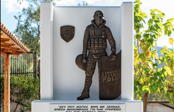 Τα αποκαλυπτήρια του μνημείου για τον Γιώργο Λυγγερίδη, τον άνδρα των ΜΑΤ που έπεσε νεκρός, ύστερα από επίθεση χούλιγκαν στου Ρέντη το 2023, έγιναν σήμερα στην έδρα των ΜΑΤ στο Γουδί.