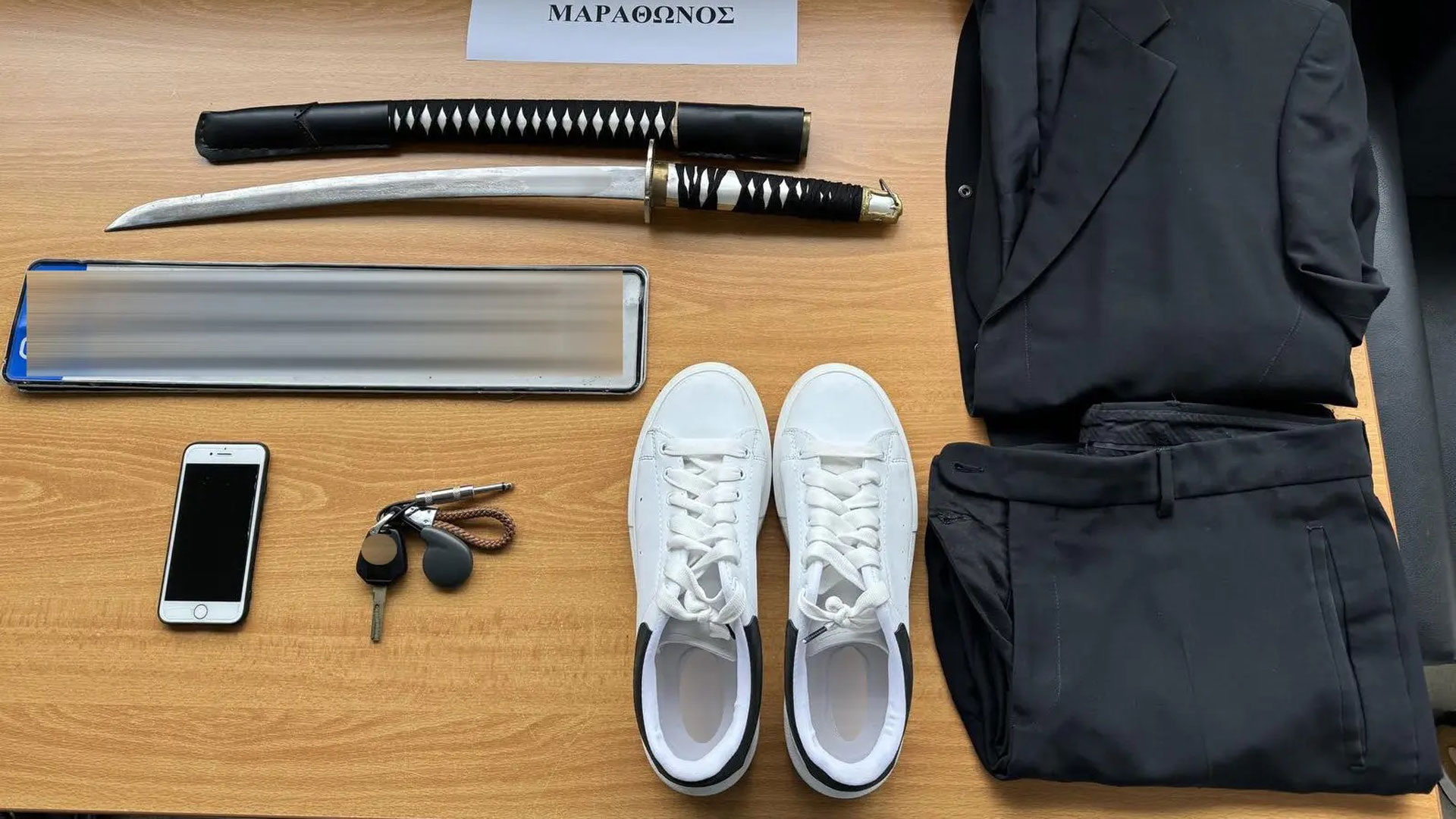 Στην κατοχή του και εντός του σπιτιού βρέθηκαν σπαθί τύπου σαμουράι, ένα κινητό, ρουχισμός που χρησιμοποιήθηκε κατά τη διάπραξη της ληστείας στη Νέα Μάκρη, καθώς και αυτοκίνητο ως μέσο τέλεσής της. Ο συλληφθείς, οδηγήθηκε στον αρμόδιο εισαγγελέα.