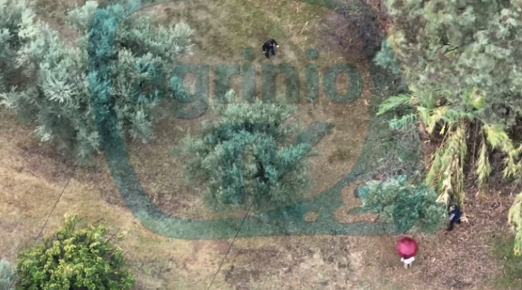 Η κάμερα καταγράφει την κάτοψη του υπαίθριου χώρου, όπου φαίνονται καθαρά οι κινήσεις του 30χρονου και του αξιωματικού – διαπραγματευτή της υποδιεύθυνσης Ασφάλειας Αγρινίου.