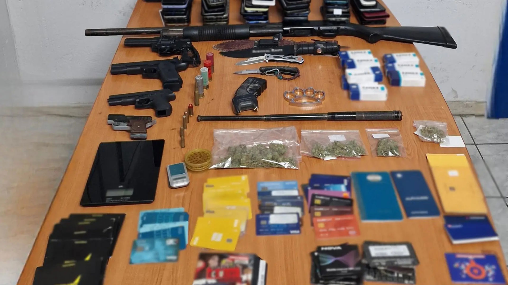 Στο πλαίσιο της αστυνομικής επιχείρησης που έλαβε χώρα το πρωί της 26ης Νοεμβρίου και οδήγησε στη σύλληψη 25 μελών, κατασχέθηκαν μεταξύ άλλων πλήθος τραπεζικών καρτών, βιβλιαρίων, ηλεκτρονικών συσκευών, οπλισμός, πιστόλι φωτοβολίδων, tazer, πλήθος οχημάτων, χρηματικό ποσό και ποσότητες ναρκωτικών ουσιών.